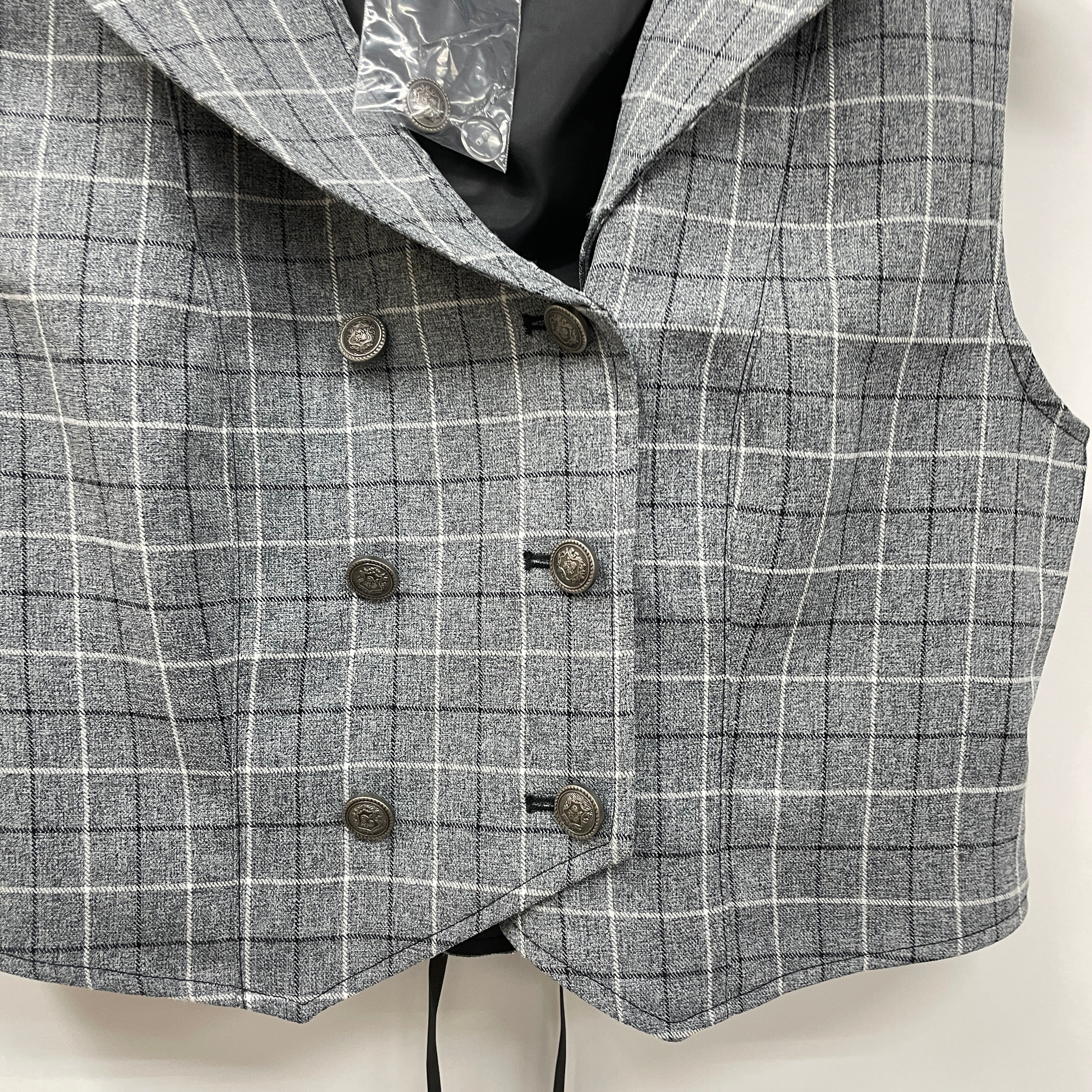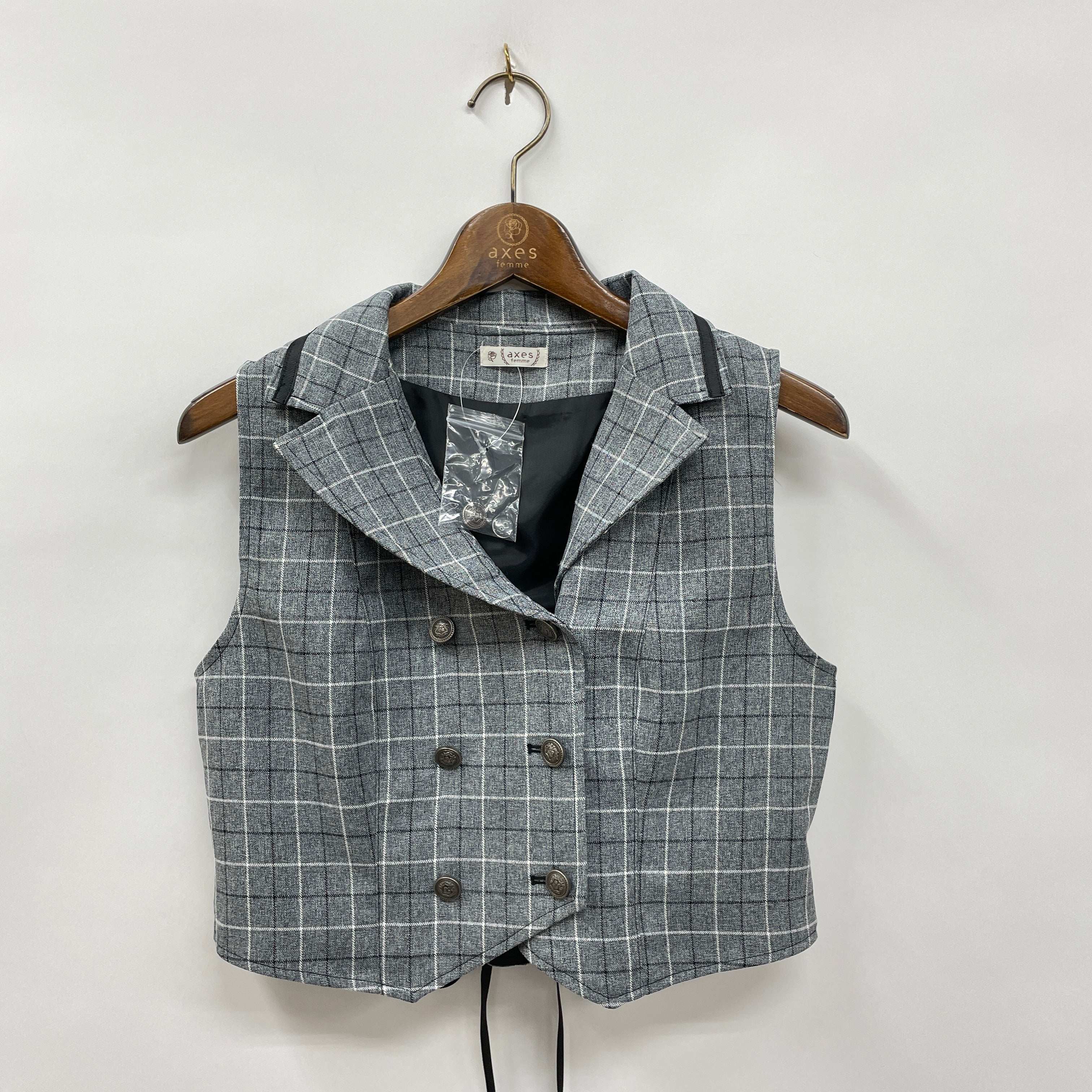 チェック×エンブレムボタンが制服風なデザインのベストです。