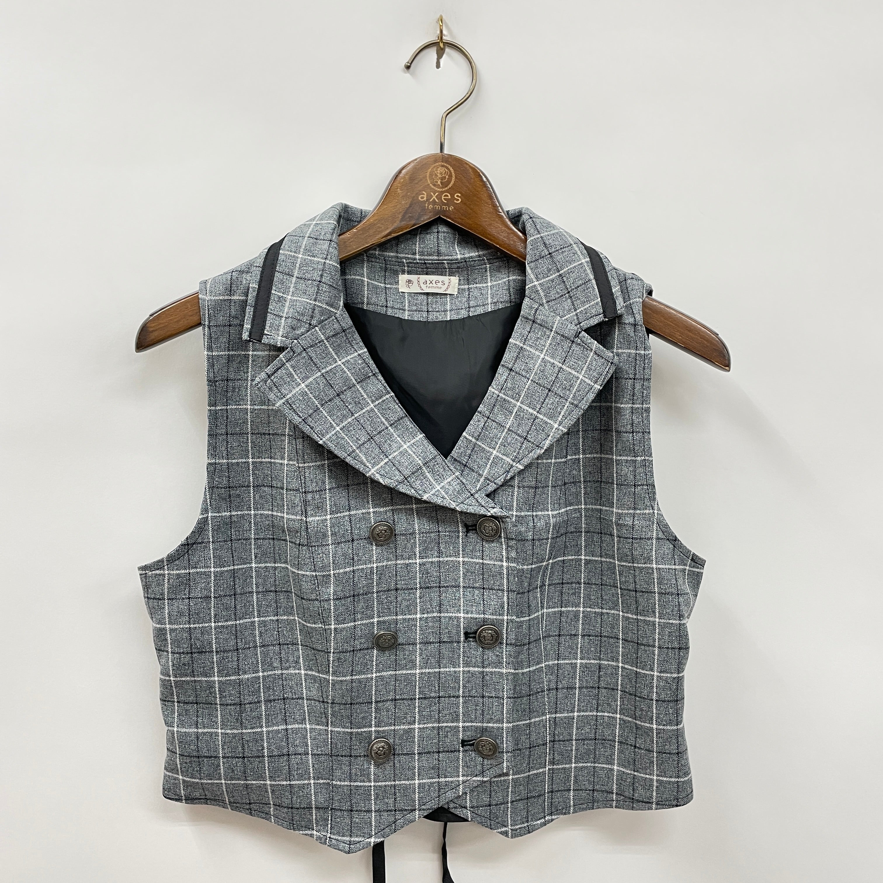 チェック×エンブレムボタンが制服風なデザインのベストです。