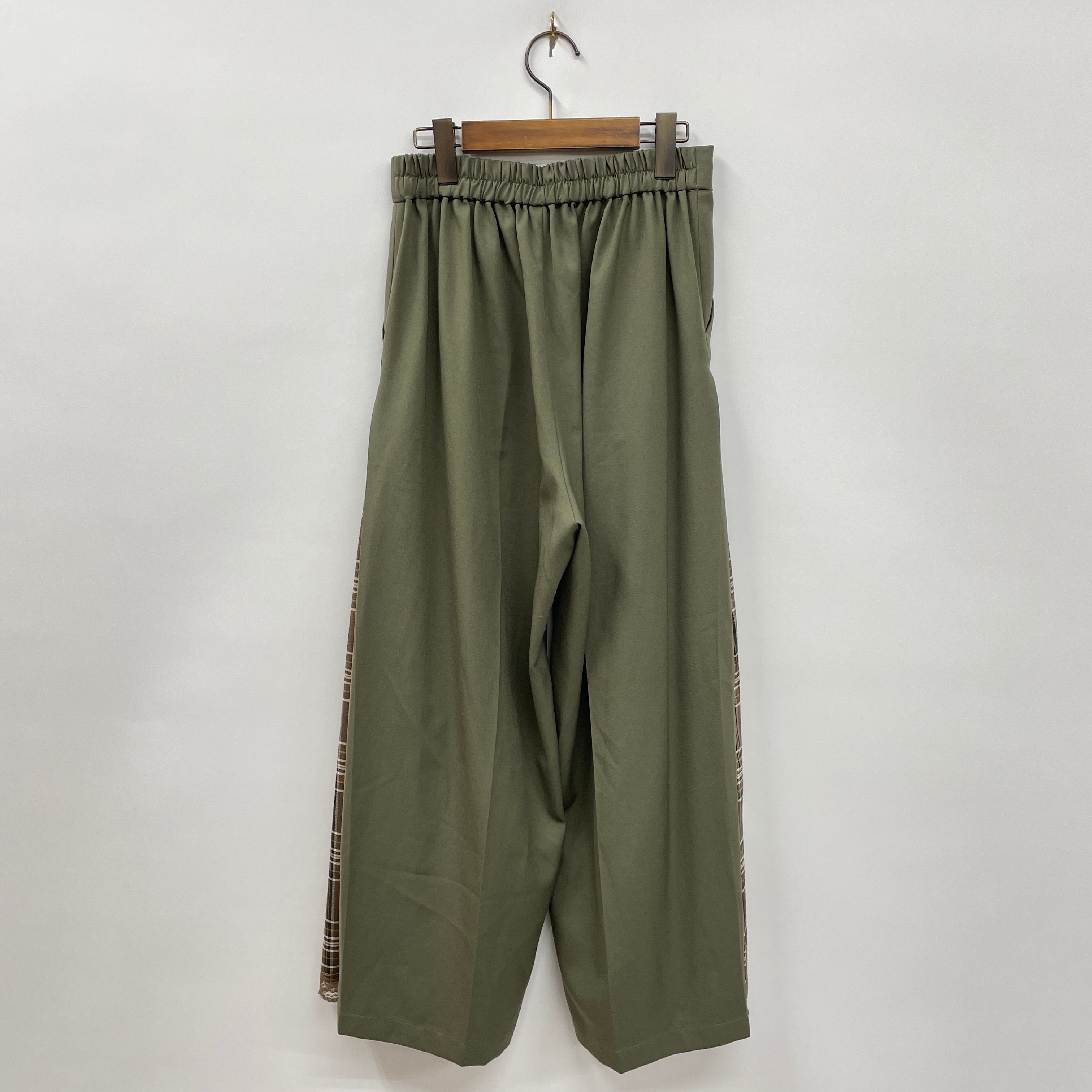 秋の訪れを感じるサイドのチェック柄切り替えなど、こだわりの詰まったワイドパンツです。