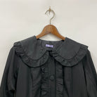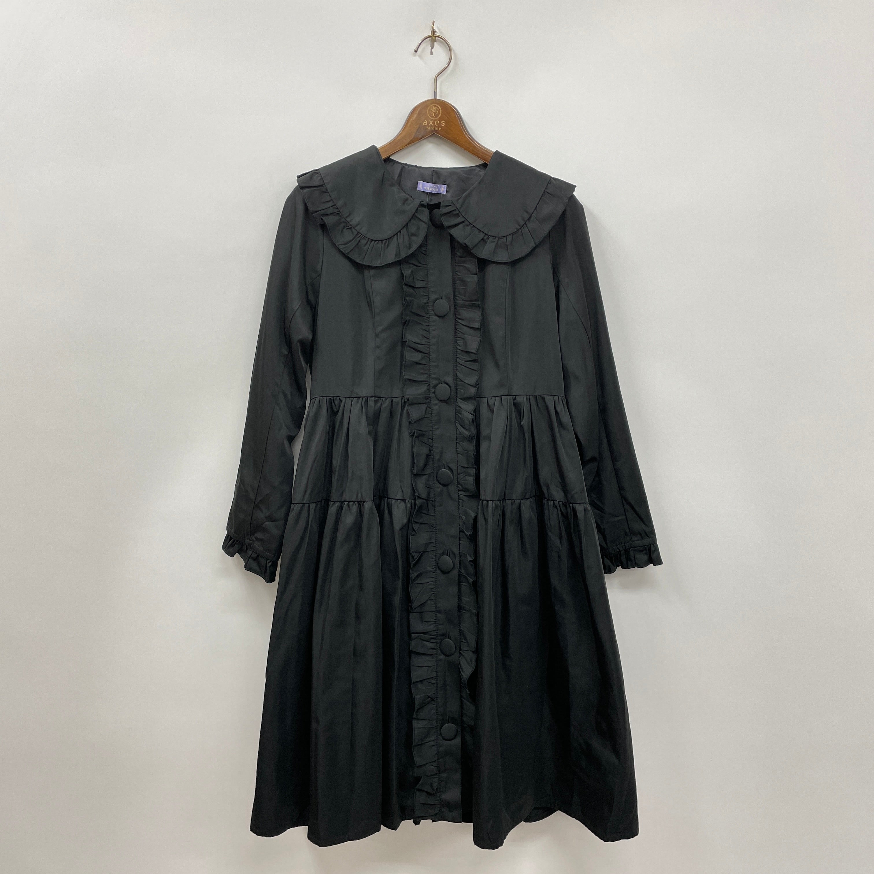 ティアード切り替えや、ところどころにフリルがたくさんあしらわれたガーリーなトレンチコート。春や秋など寒暖差が微妙な季節でも可愛くありたい方の為のトレンチコートです!前を閉めてパニエを履いても綺麗に広がるデザインです。