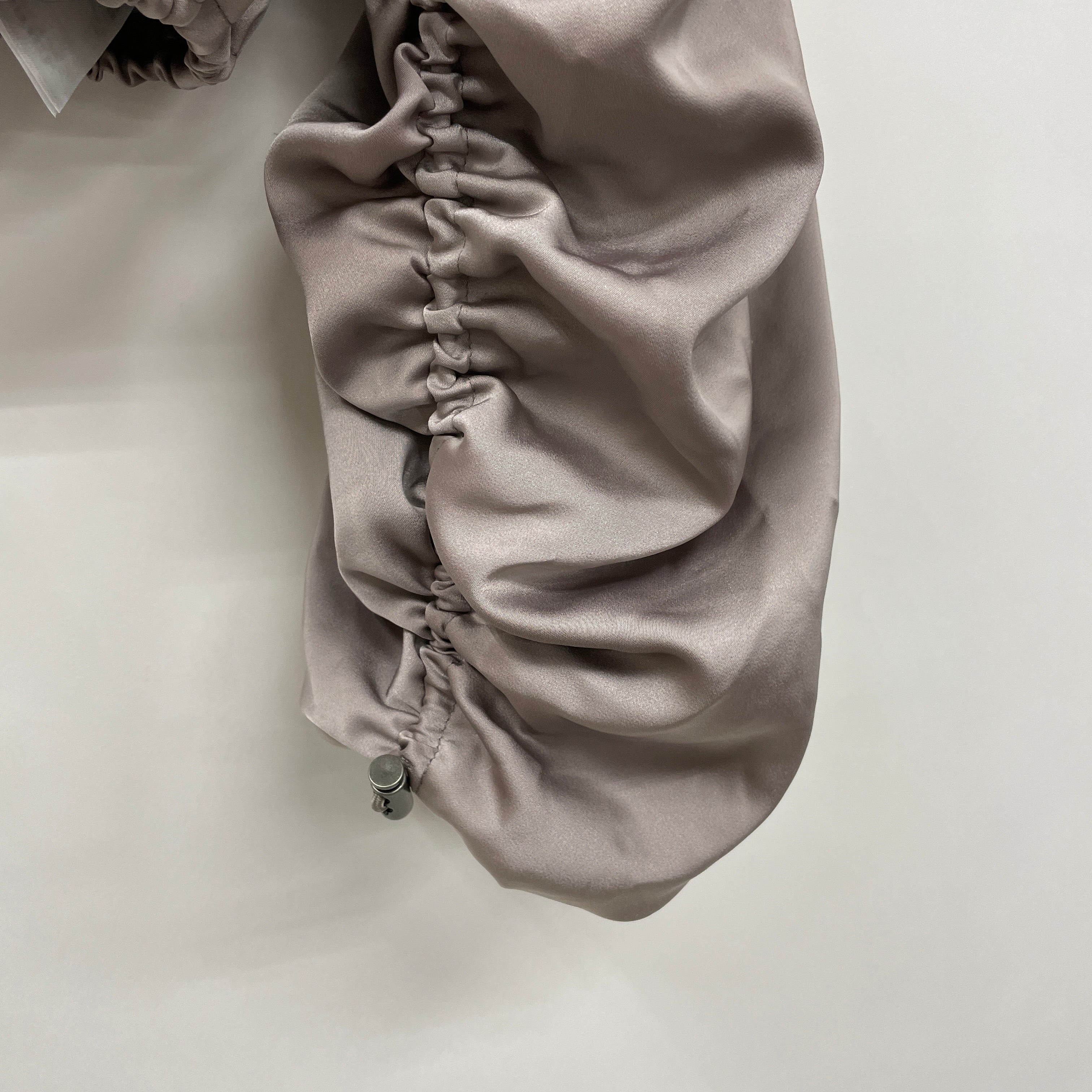 微光沢のサテン素材を使用したブルゾンです。