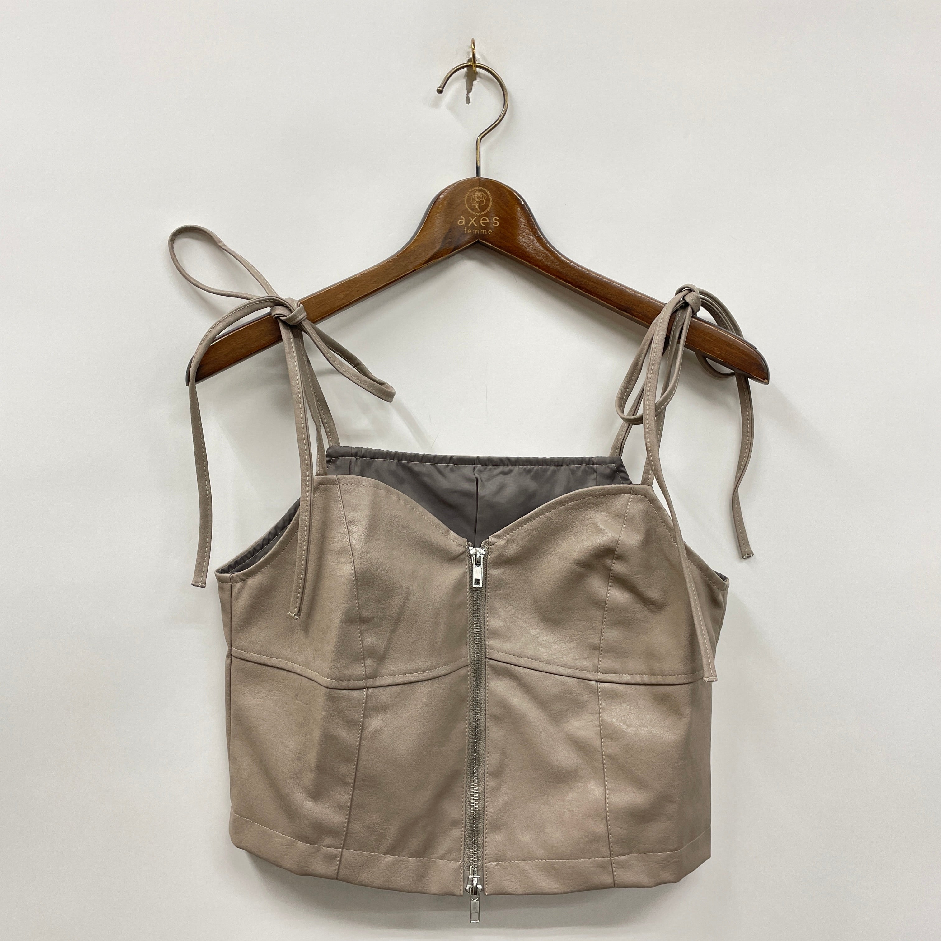 モードに決まるフェイクレザーのビスチェ