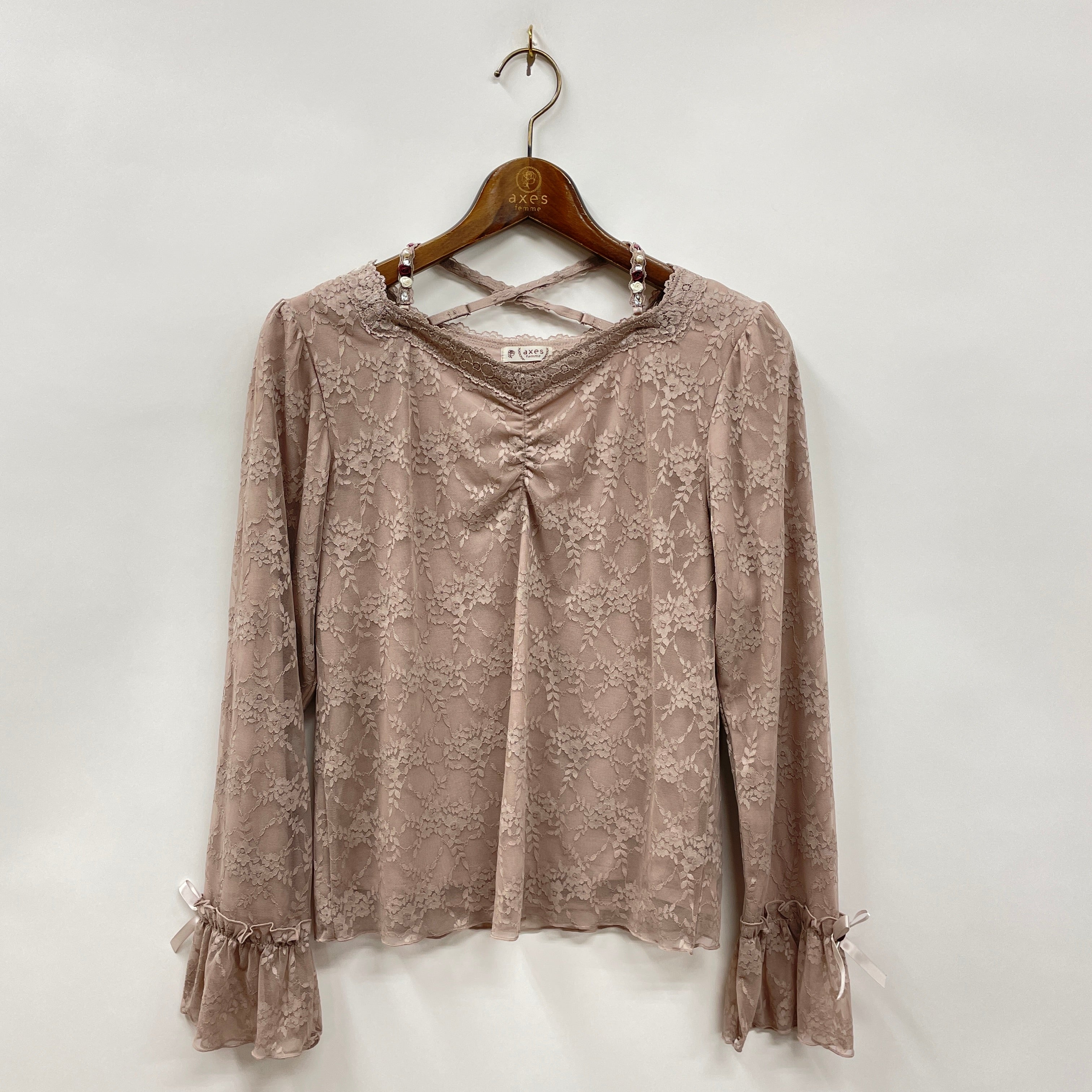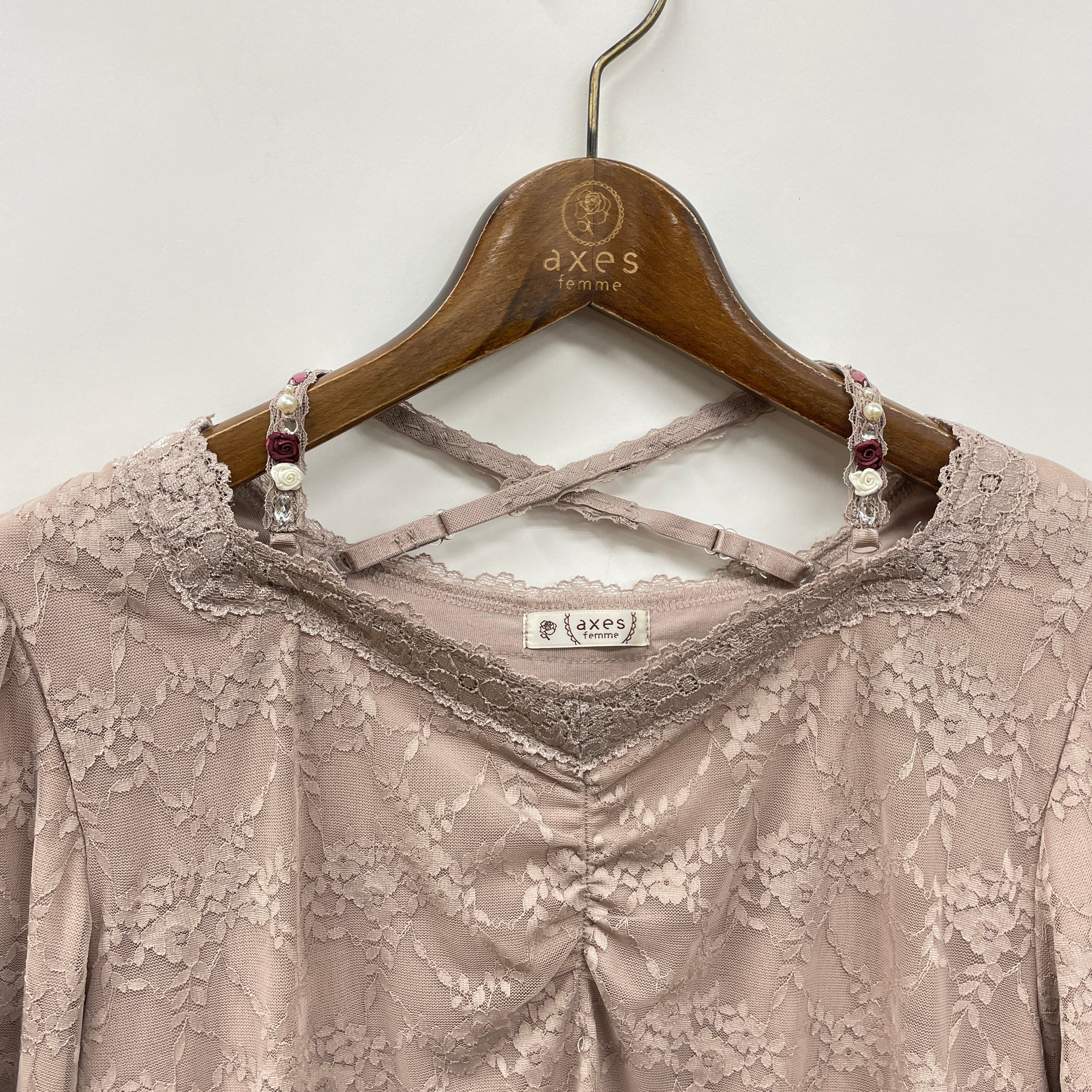 巻きバラ×パールビジューのキラキラした装飾が目を惹くクロスストラップインナーです。