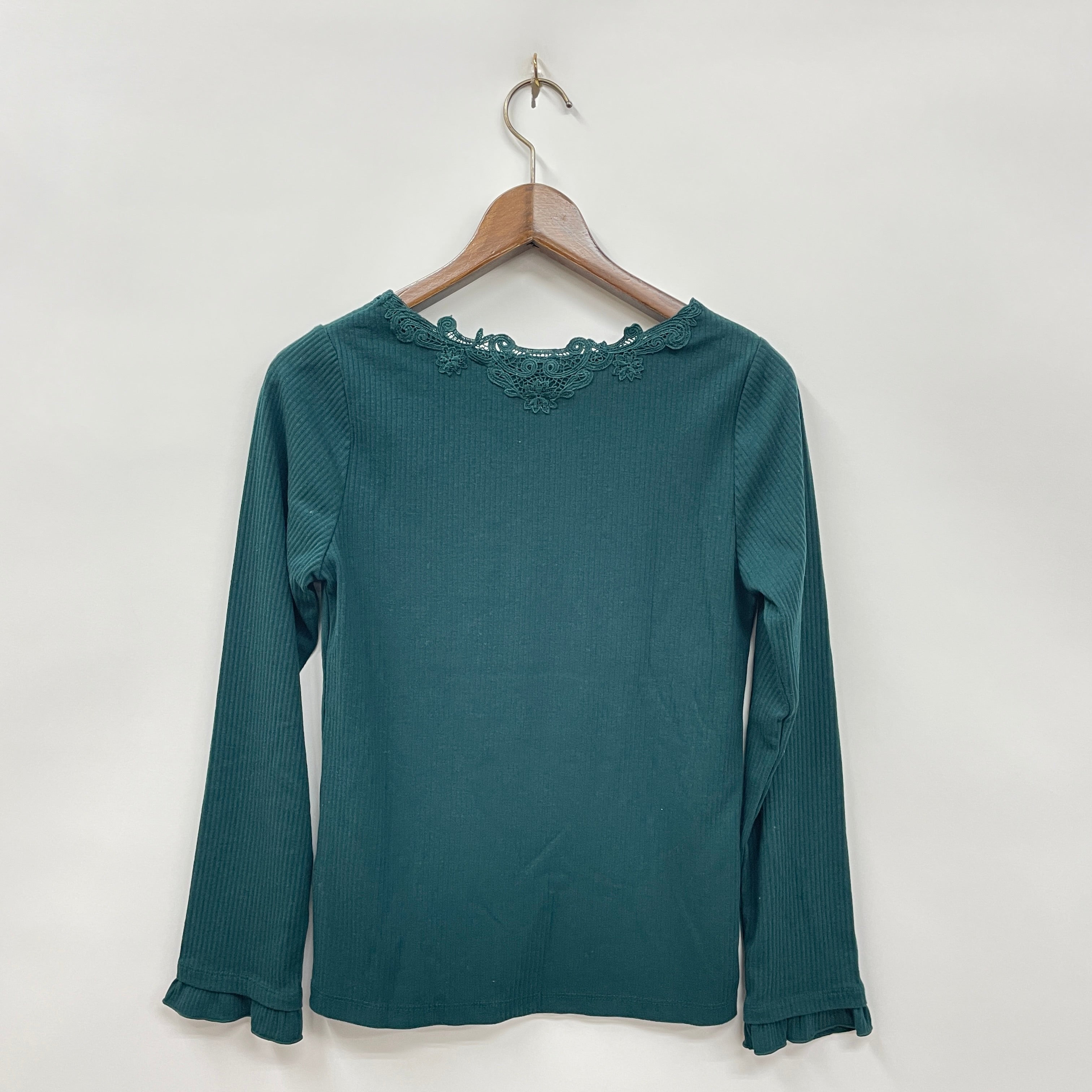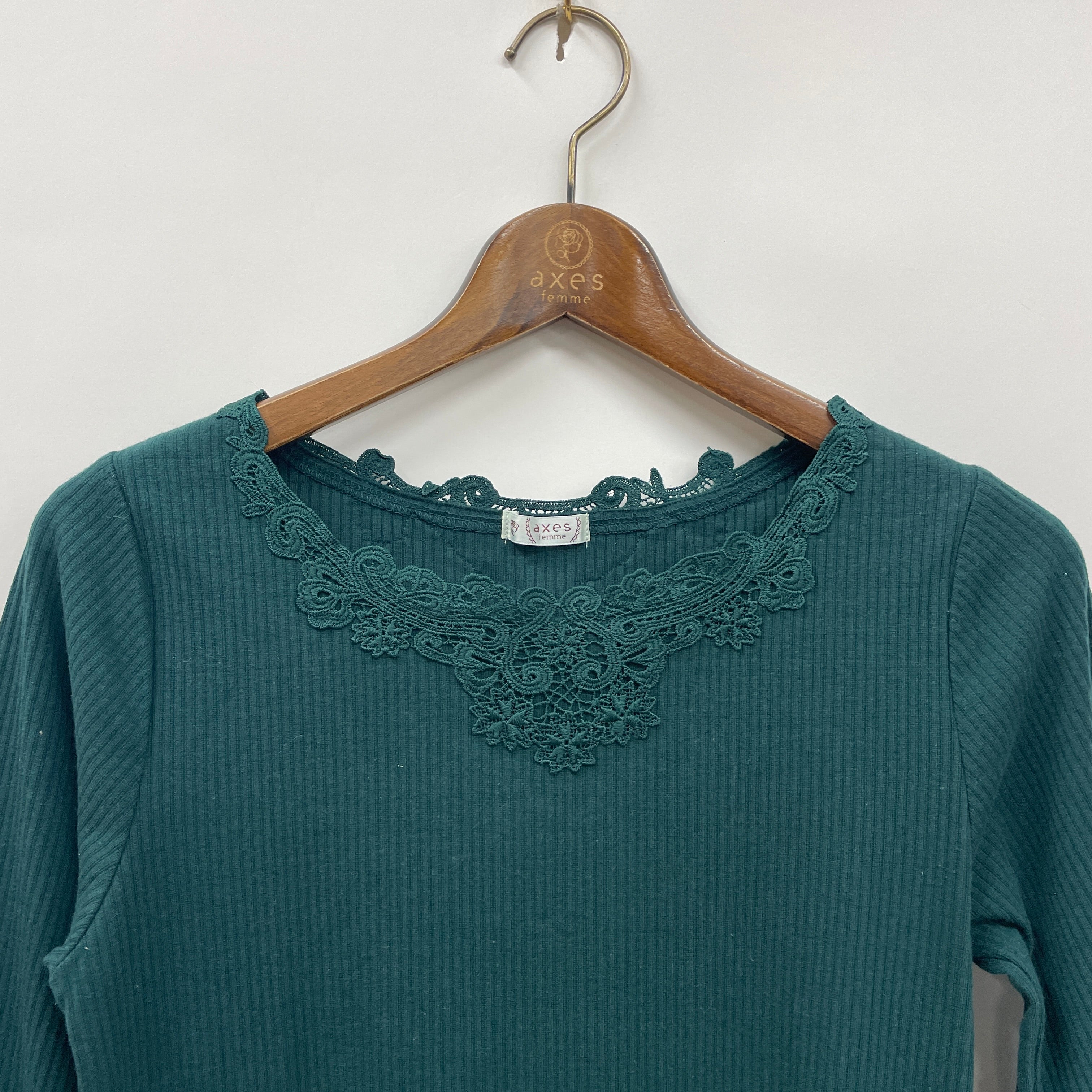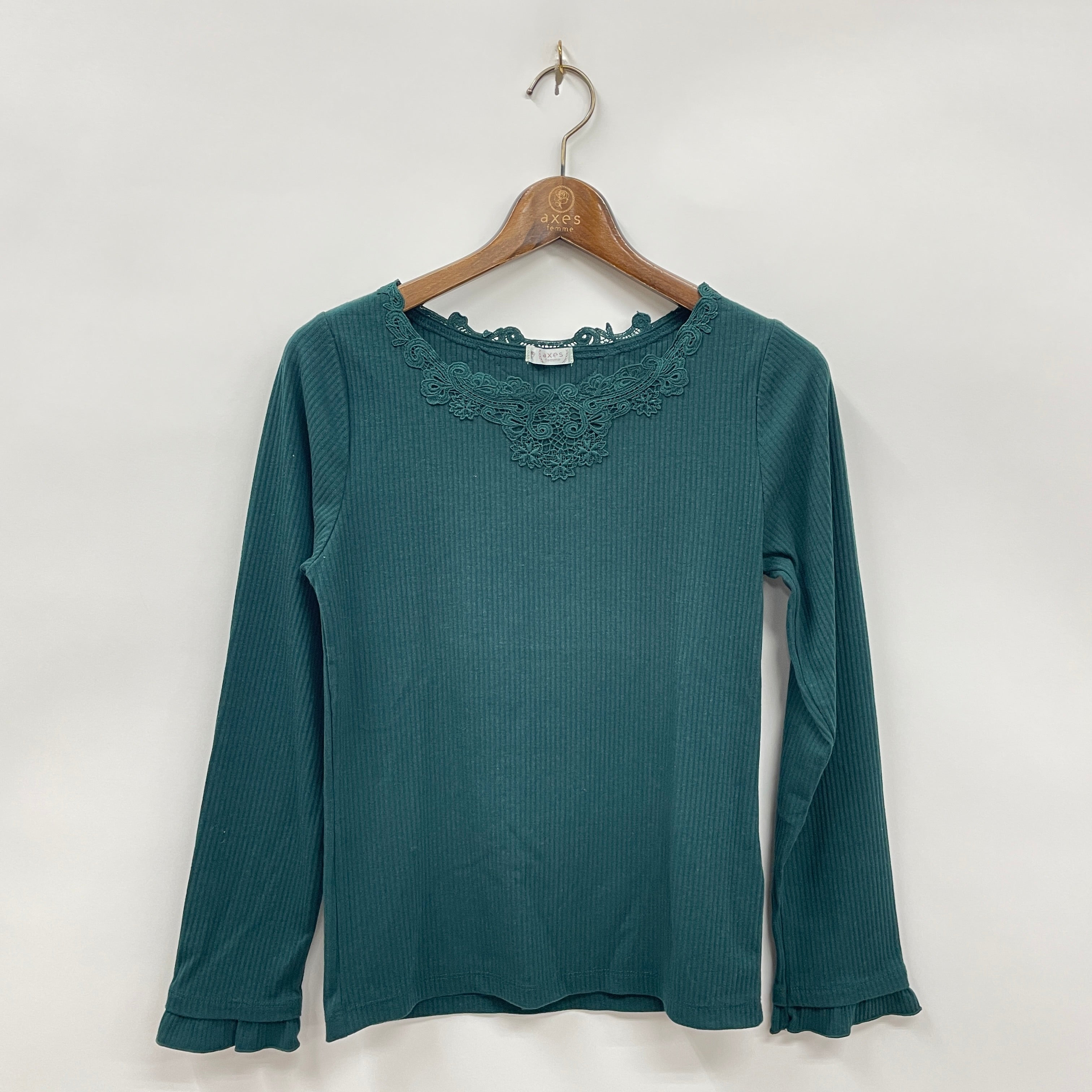 前後にオリジナルのモチーフレースをあしらった、着回し抜群の長袖インナーです。