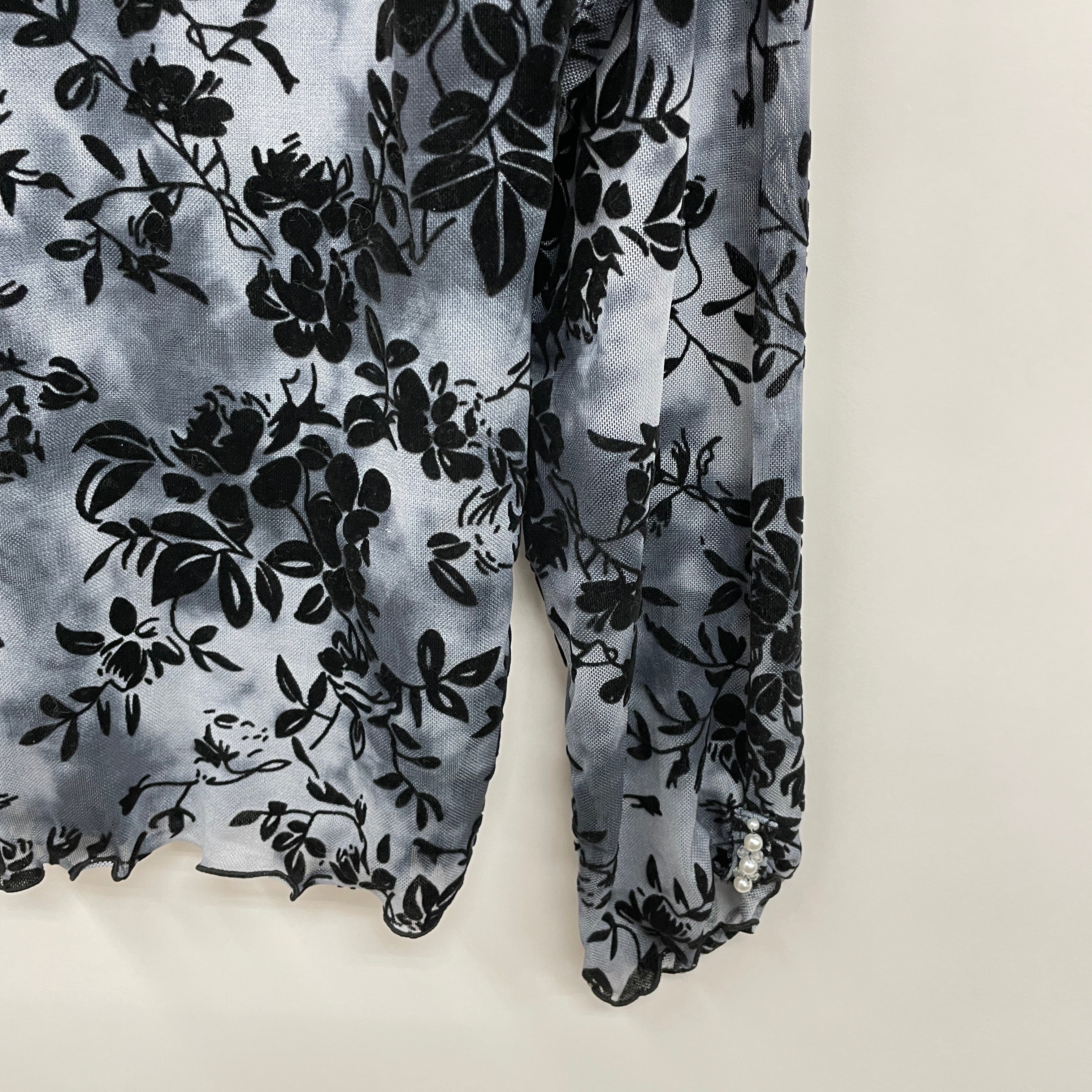 袖口はくしゅっとしたギャザーデザインで、パールをあしらったデザインで、長袖の下に重ねて袖口だけを見せるようなスタイリングにも使用できます。