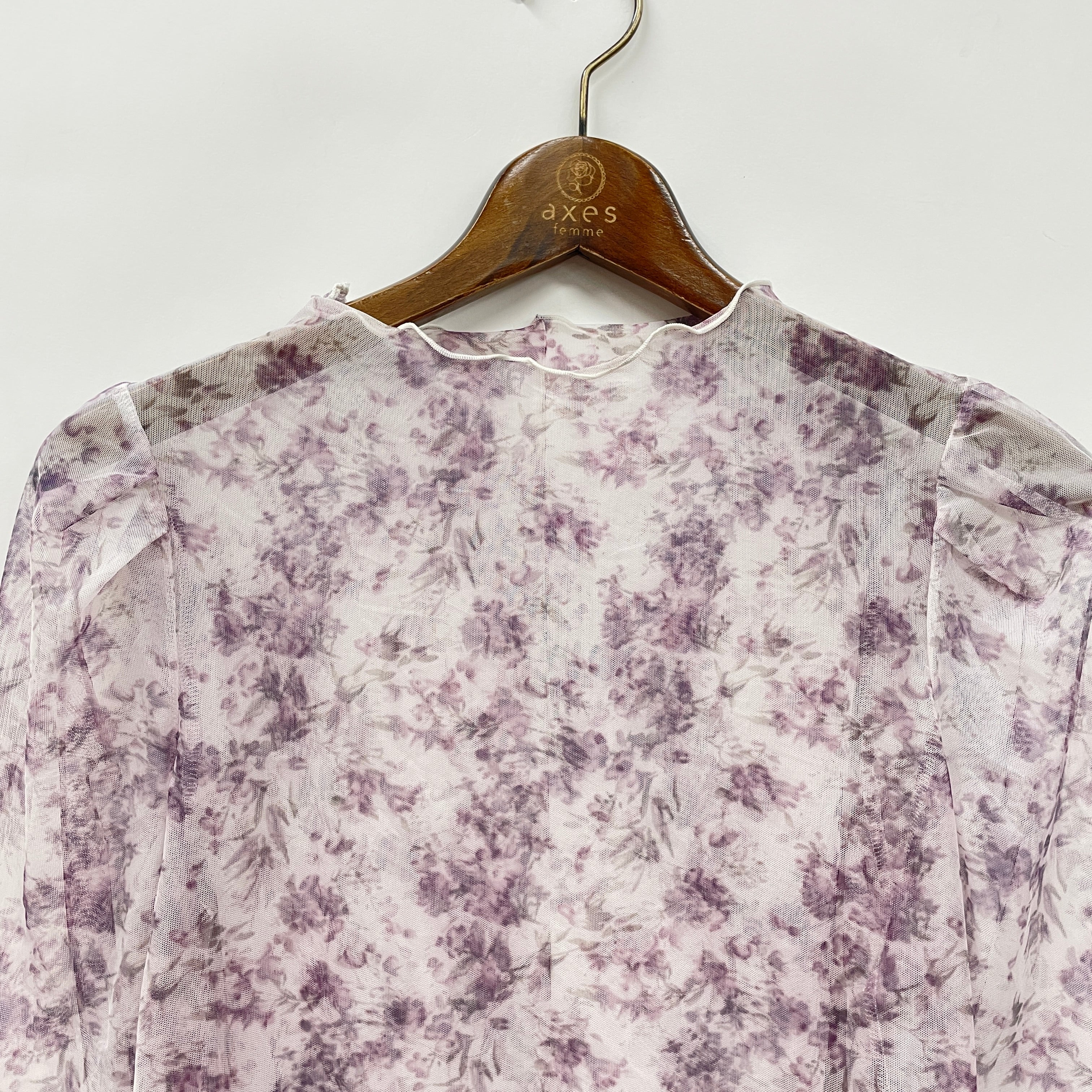 トレンドのシアーインナーaxes femmeらしい花柄のイエロー、ラベンダー+万能の無地クロの3色展開です。