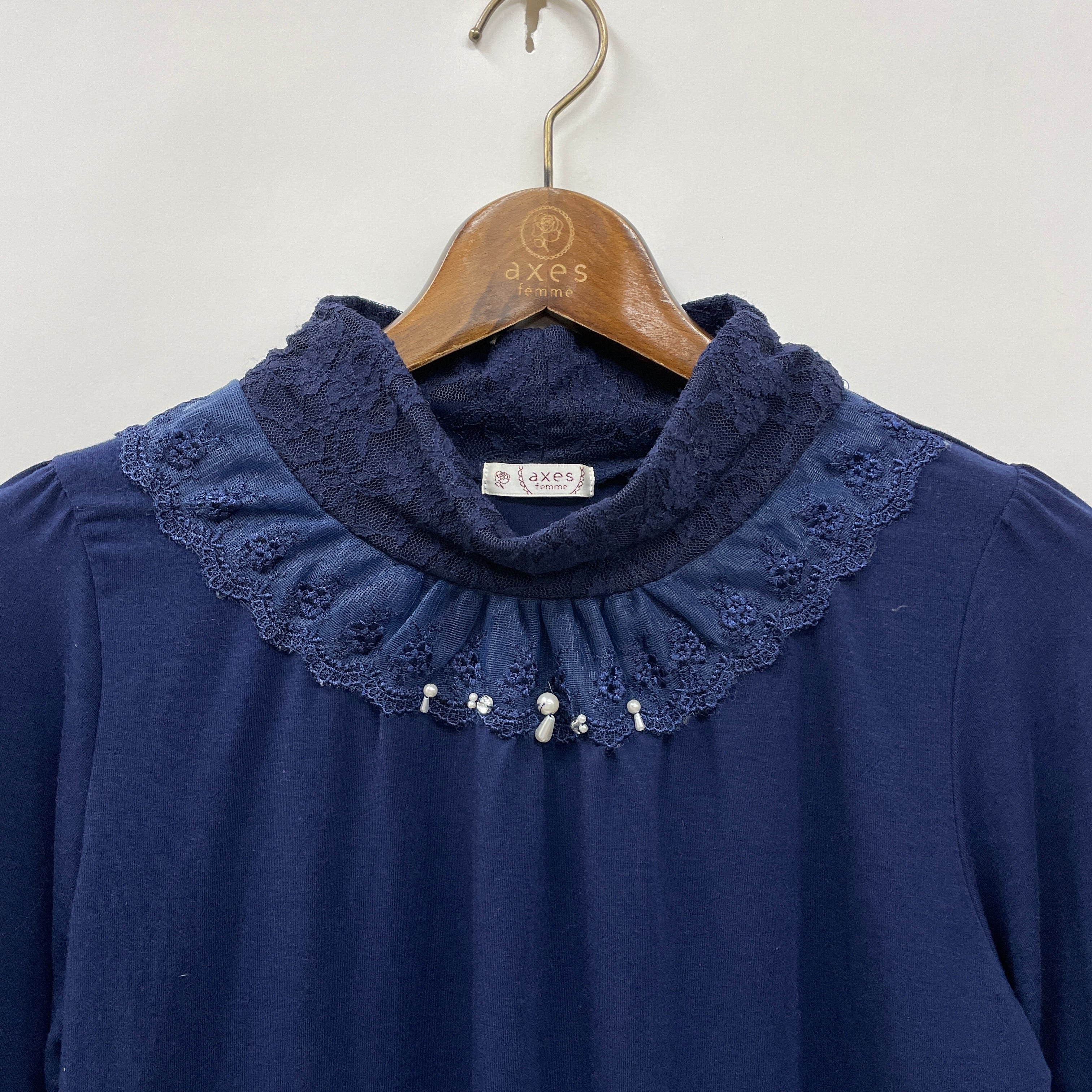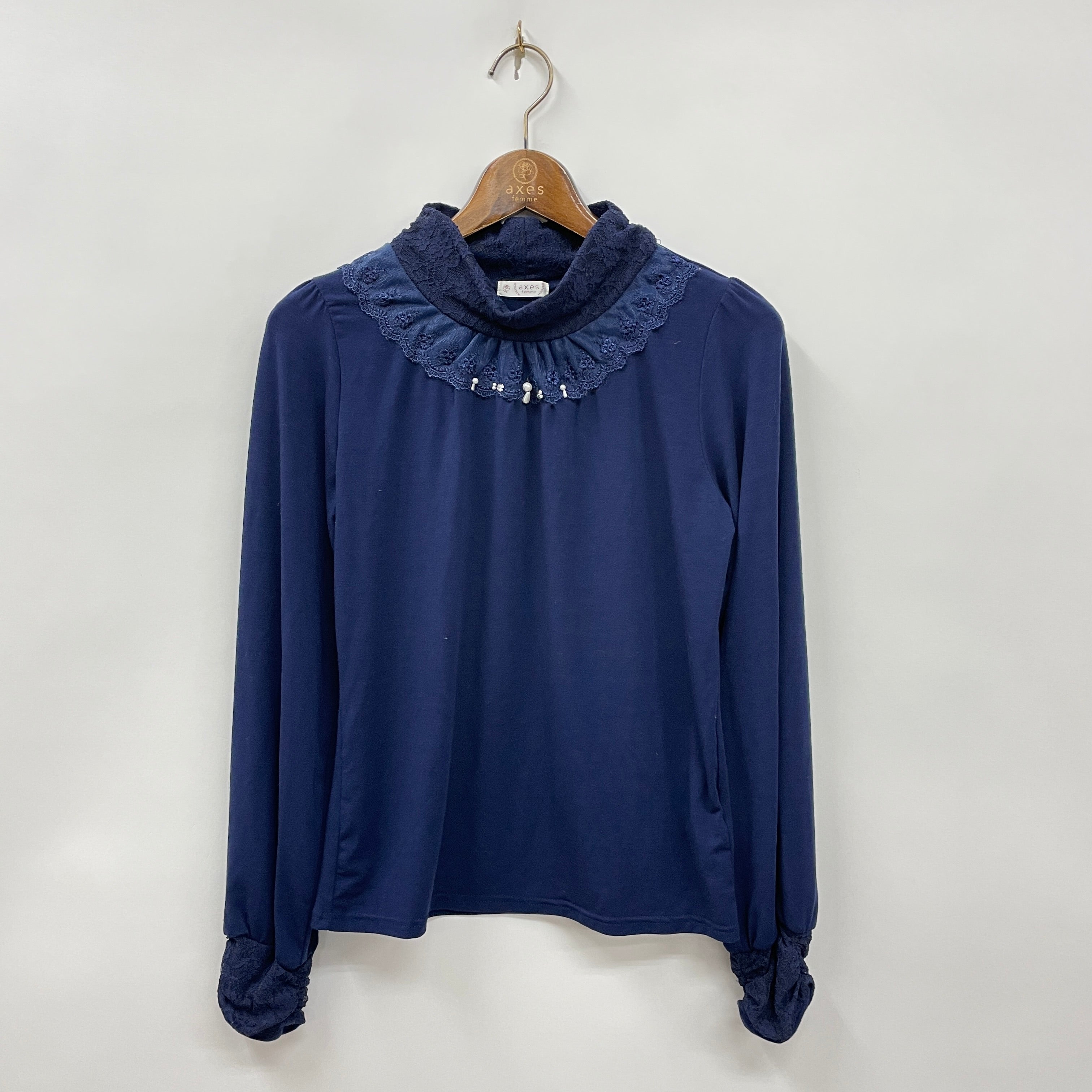 首周りと袖口のレースデザインが華やかなタートルインナーです。タートル部分は程よく開いており、柔らかな生地で重ね着しやすいインナーです。