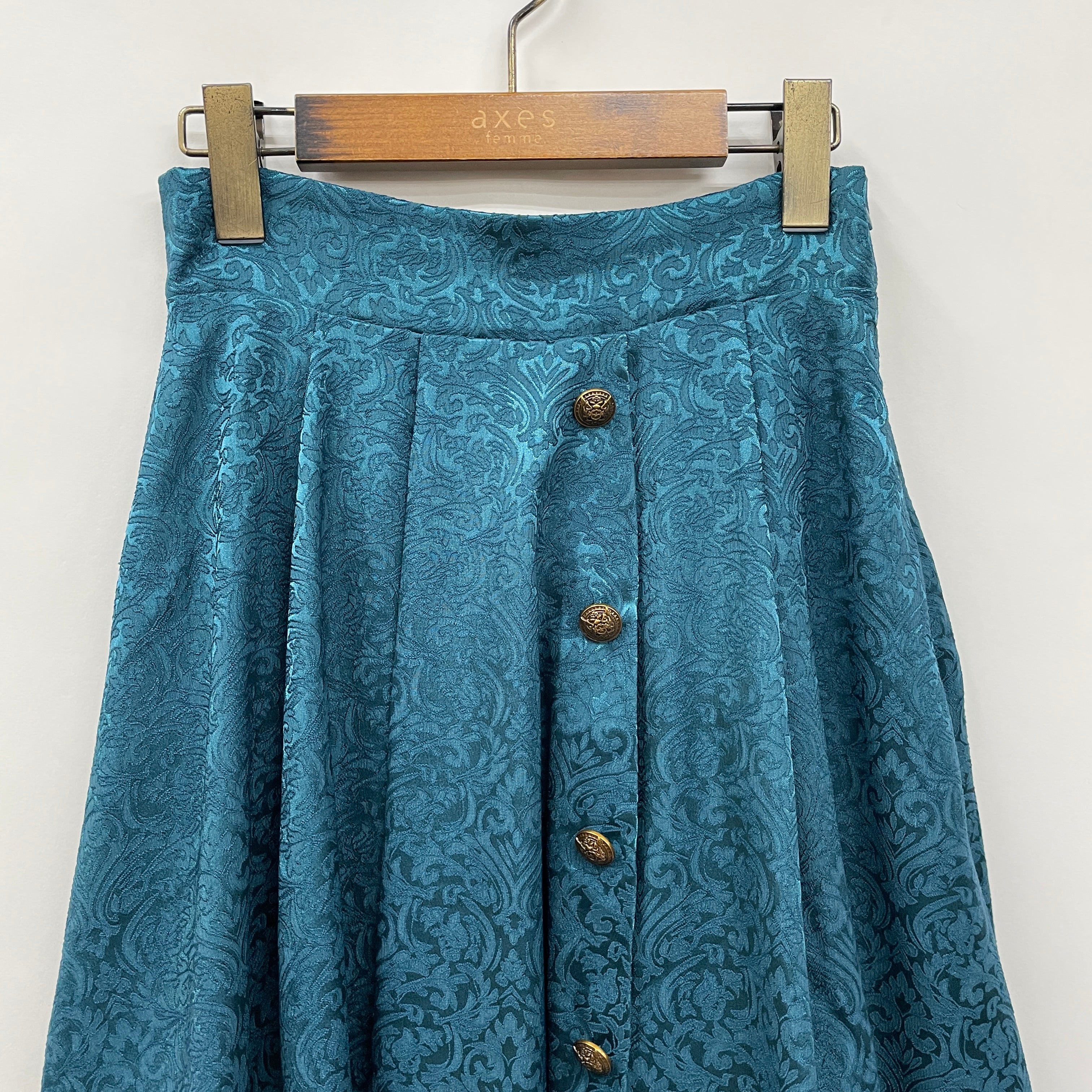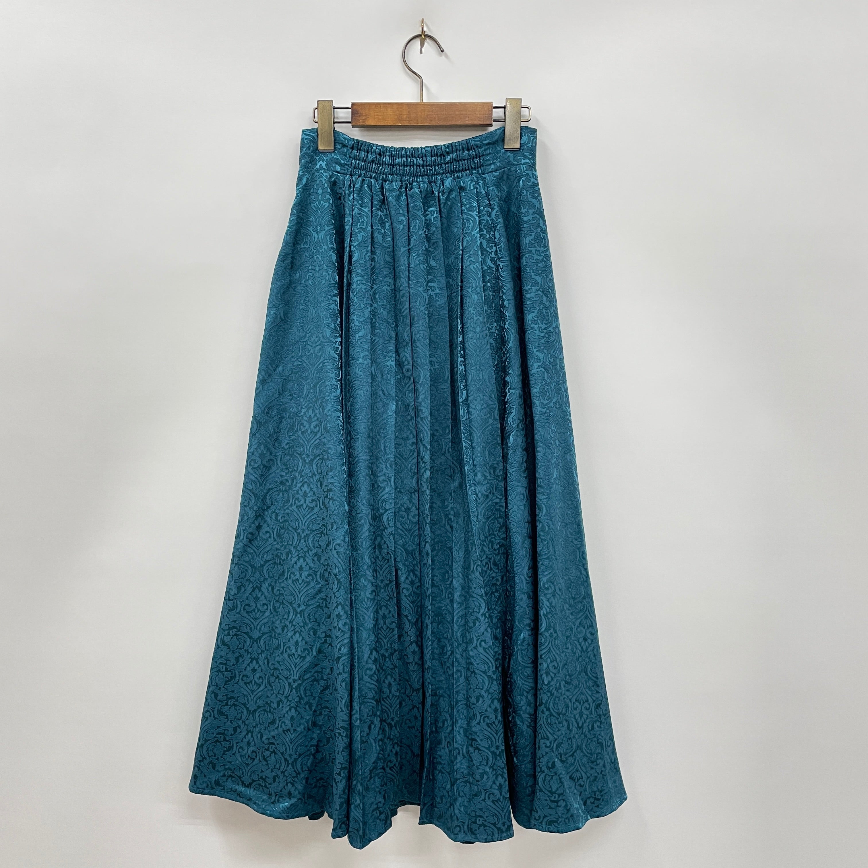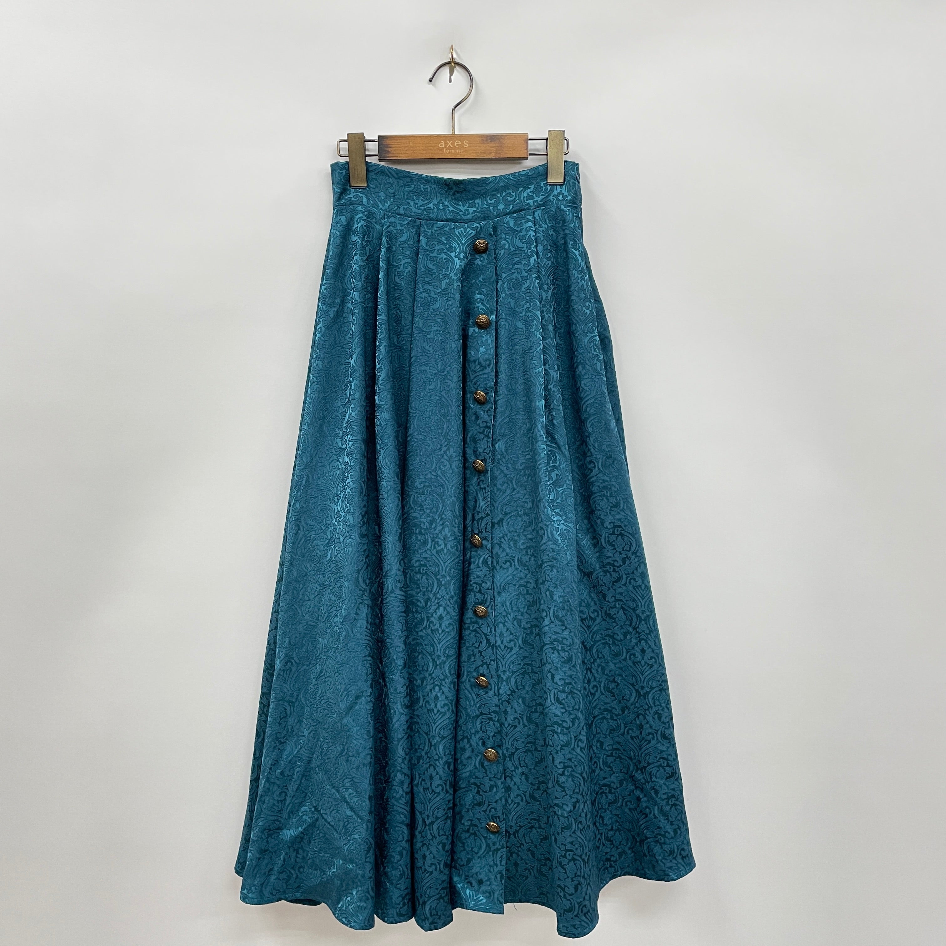 上品な光沢に美しい柄が浮かぶジャガード生地のロングスカートです。