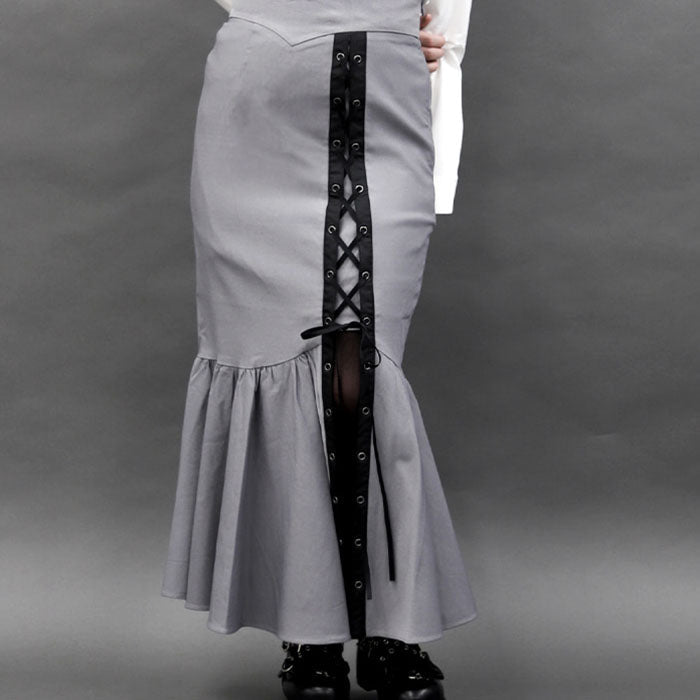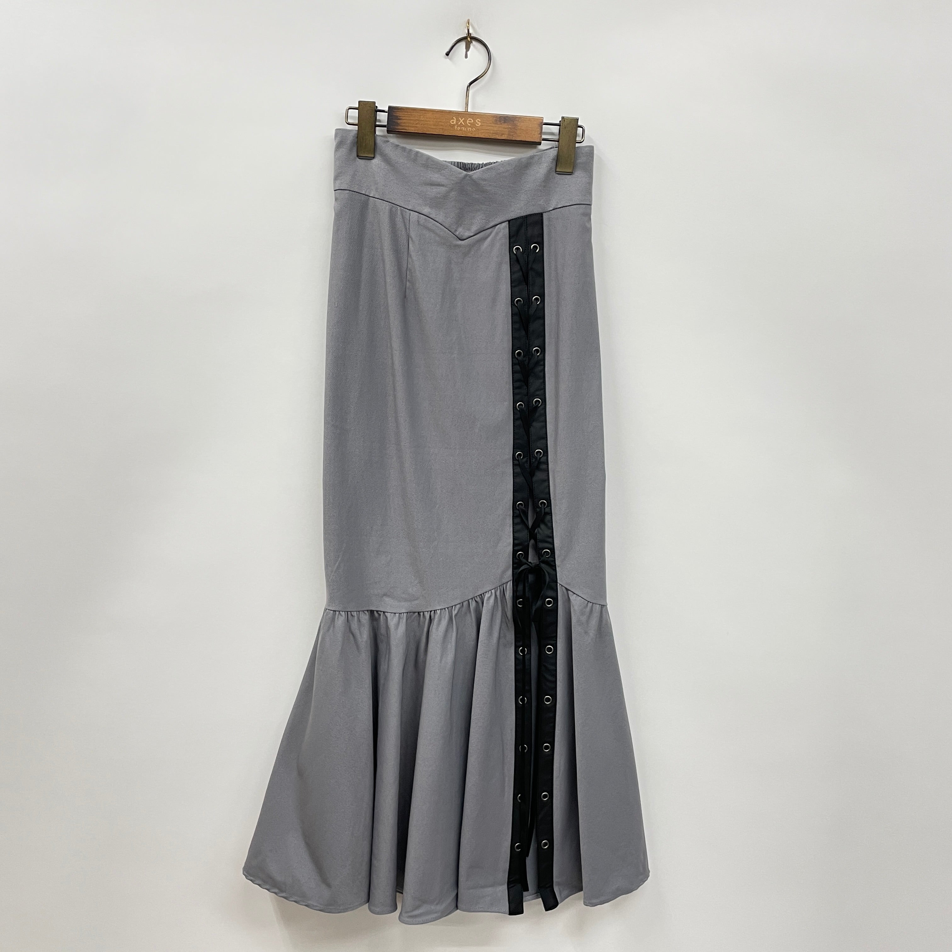 レースアップデザインを大胆にあしらったマーメイドスカートです。