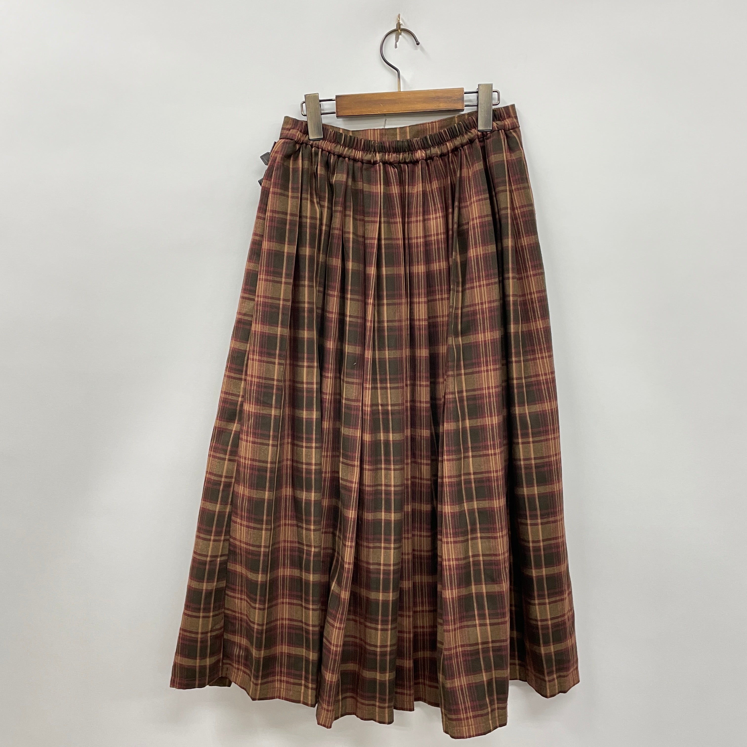 オリジナルタータンチェックが可愛いロングスカート。部分プリーツ・巻きスカート風デザインが今年らしい1枚、コーデの主役になります。カジュアルコーデ、クラシカルコーデどちらも使えるアイテムです。