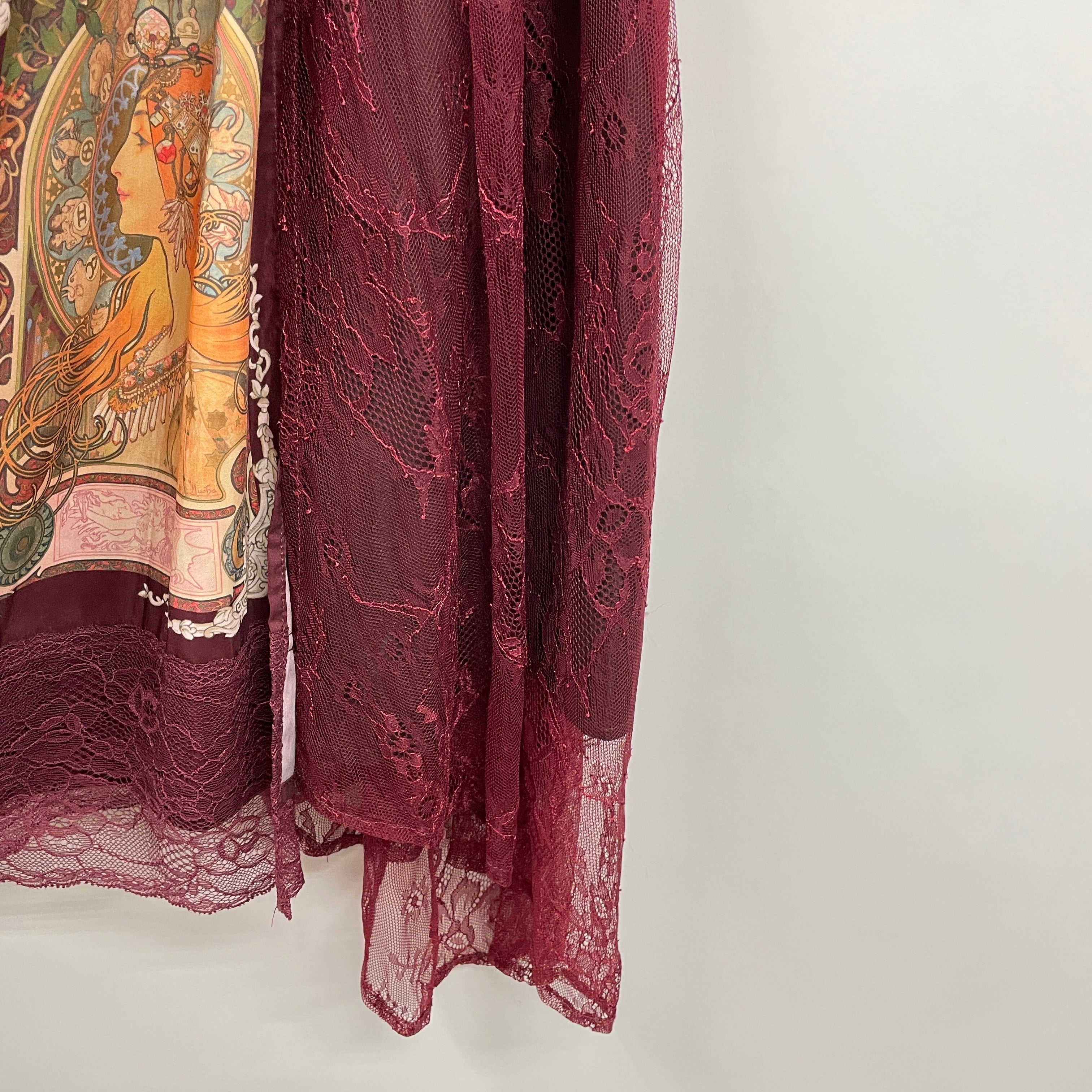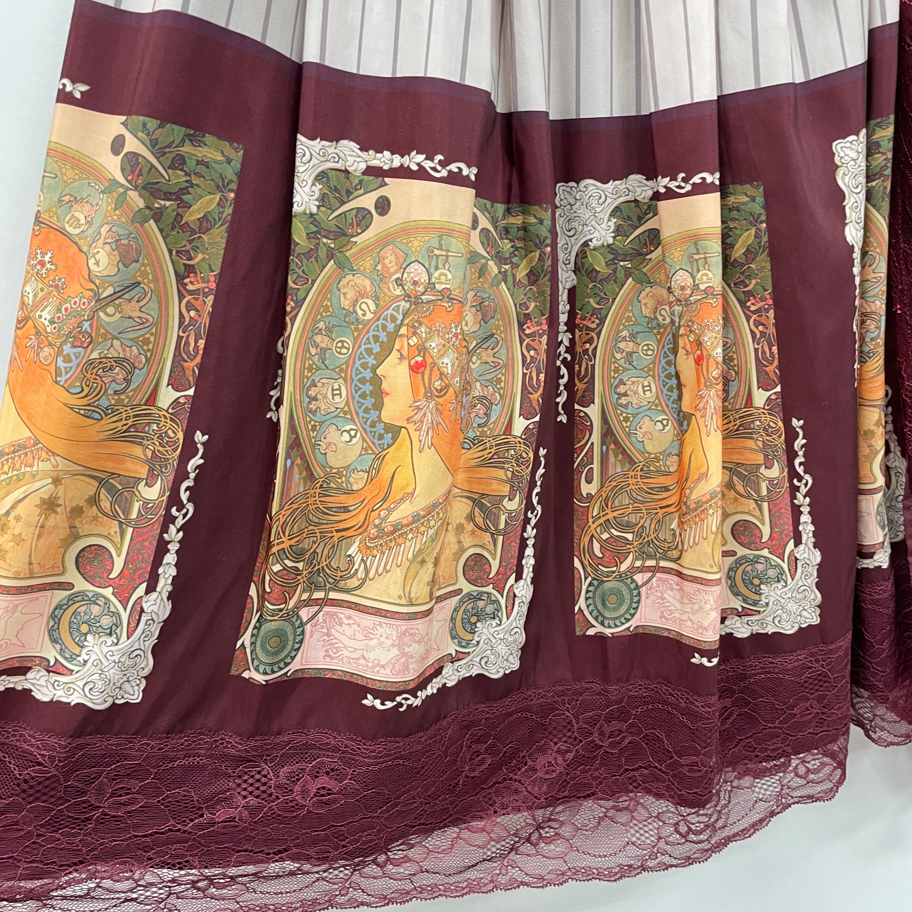 ミュシャの絵柄をパネル上に裾プリントしたスカートです。