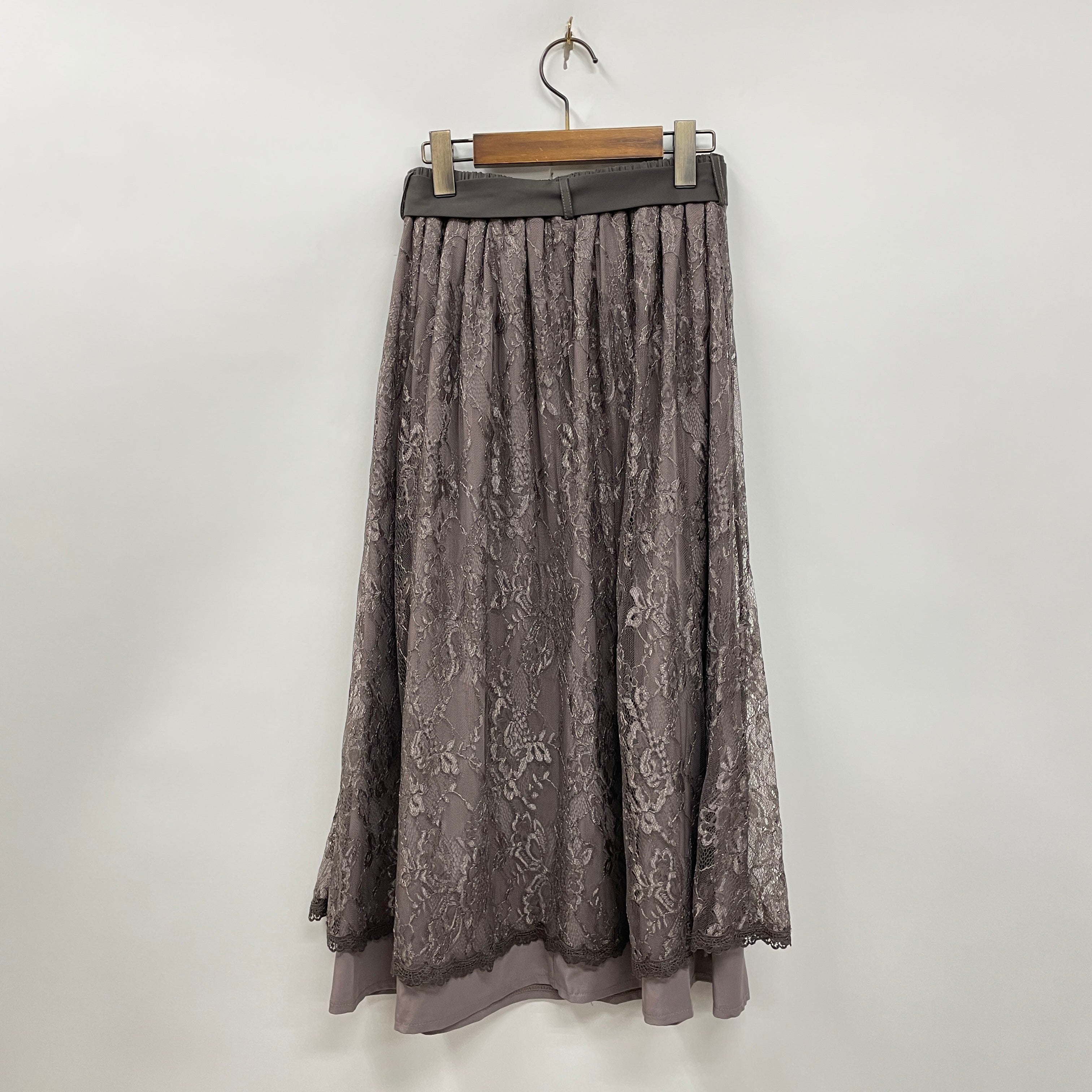 繊細な柄のレース生地を重ねた、バイカラーデザインのロングスカートです。