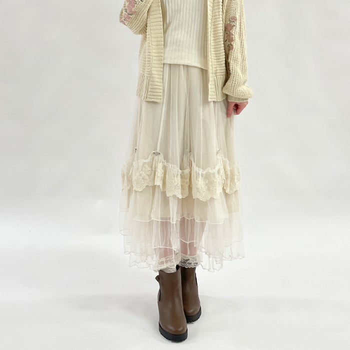 チュール・レースの重なりが美しいチュールスカートです。