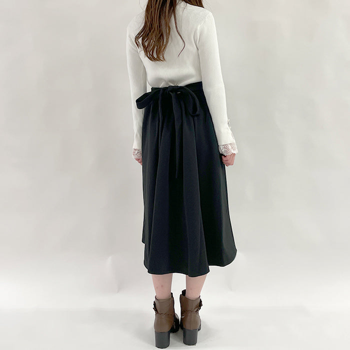 長めに取られたウエストリボンがコーディネートの主役になる1枚です。