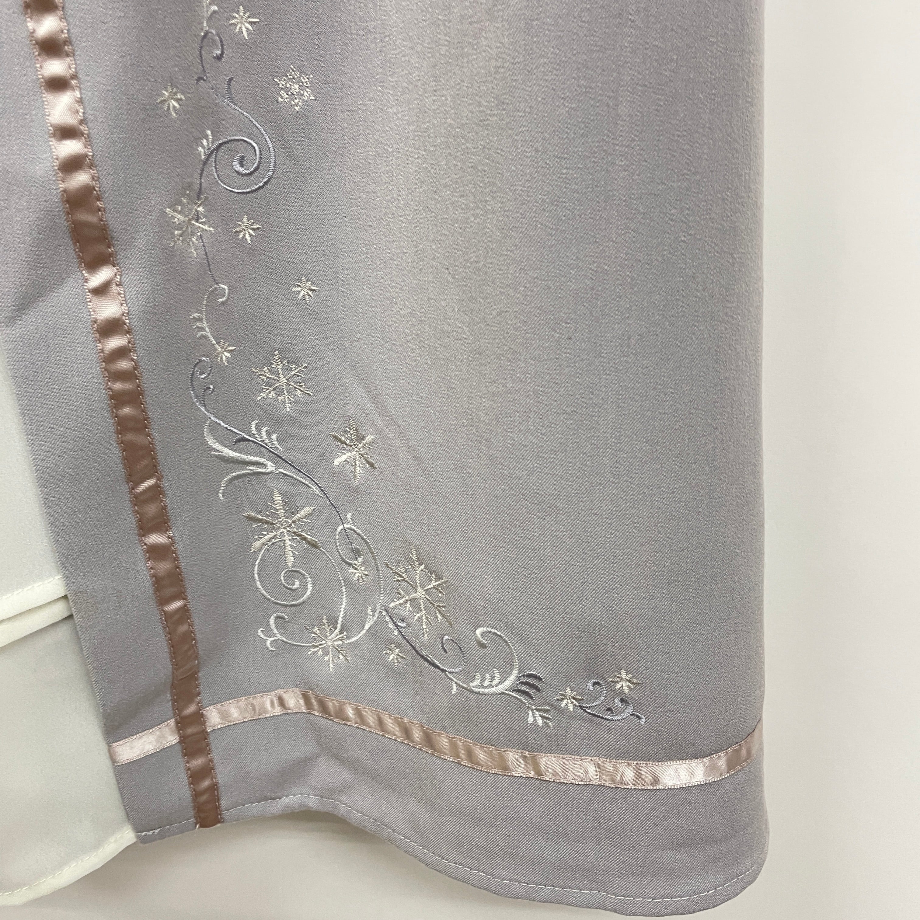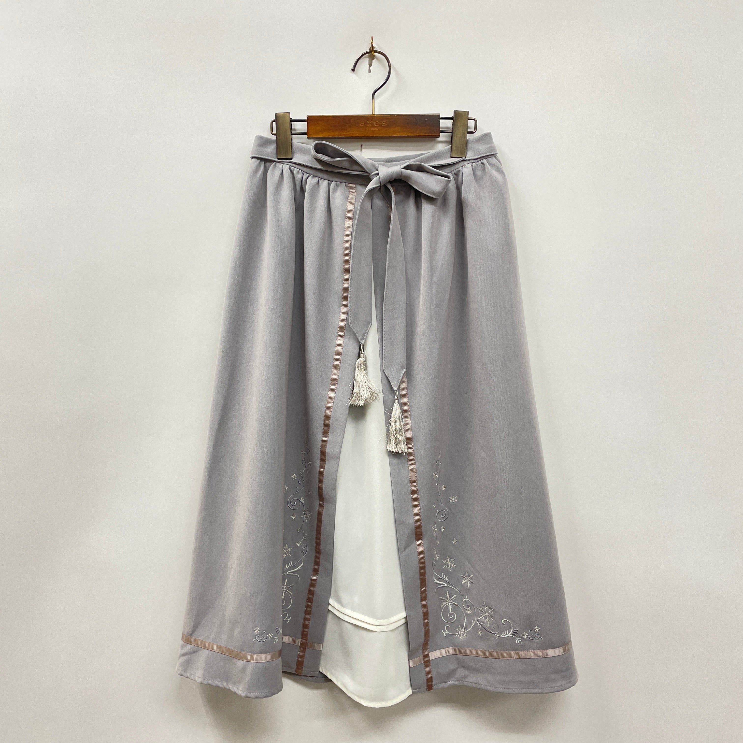 繊細な雪の結晶モチーフを刺繍したミディスカートです。重ね着したようなデザインでノスタルジックなデザインが◎、ウエストリボンにはタッセルをとりつけヴィンテージライク印象に!スノーシリーズとあわせたスタイリングが◎。