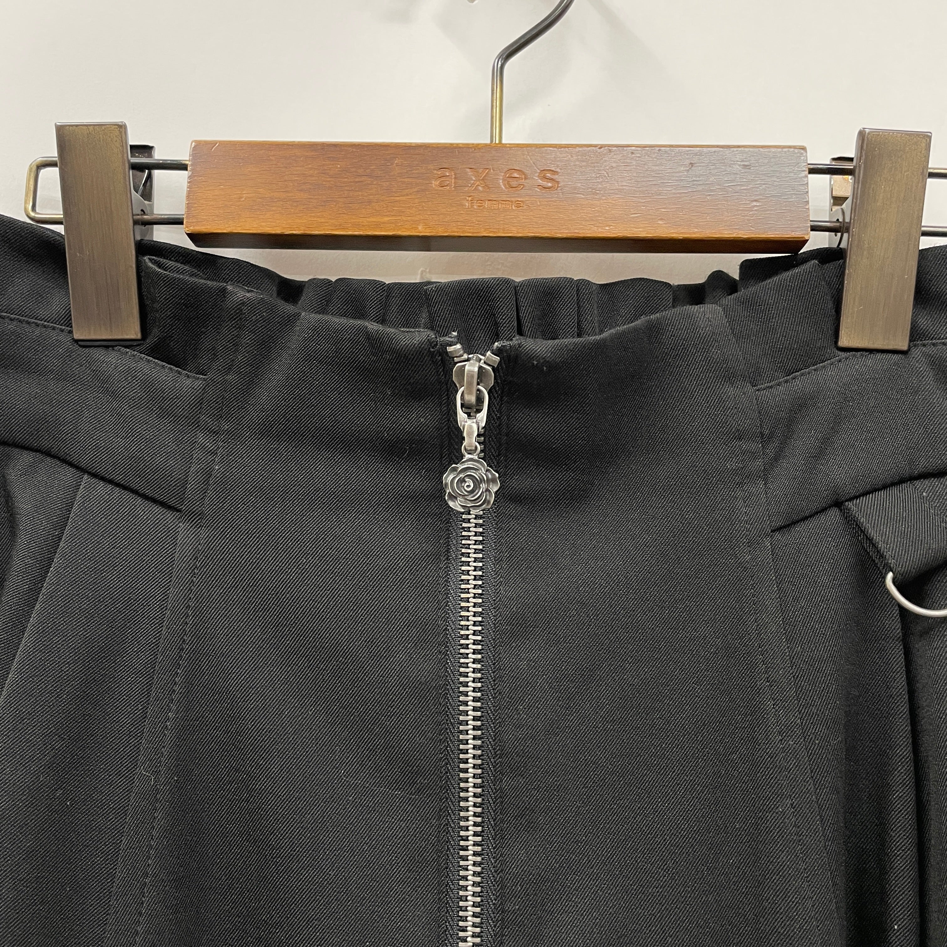 フロントのジップは開閉可能です。さりげないバラチャームでaxes femmeらしいポイントをプラス。シーズンレスなカラー展開で季節問わずお使いいただけます。