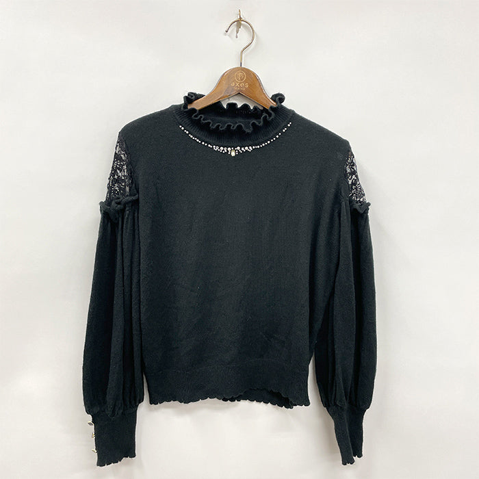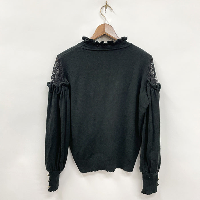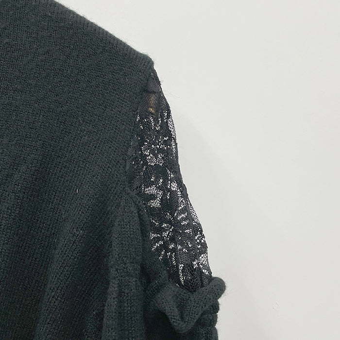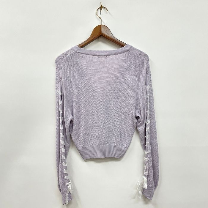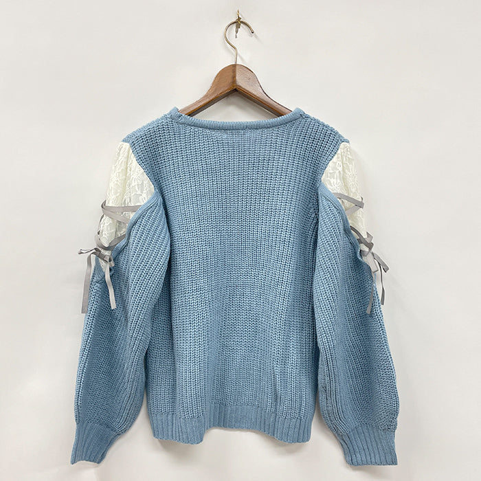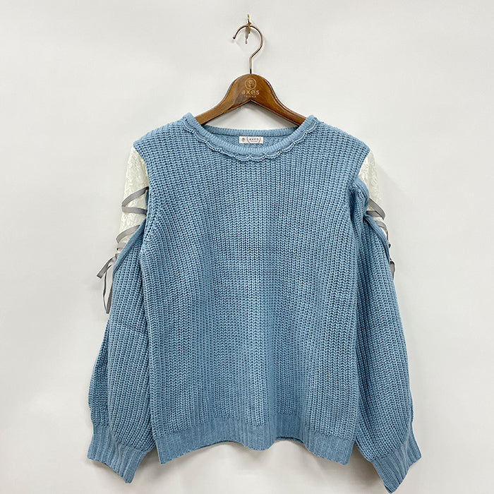 袖レースアップデザインニット
