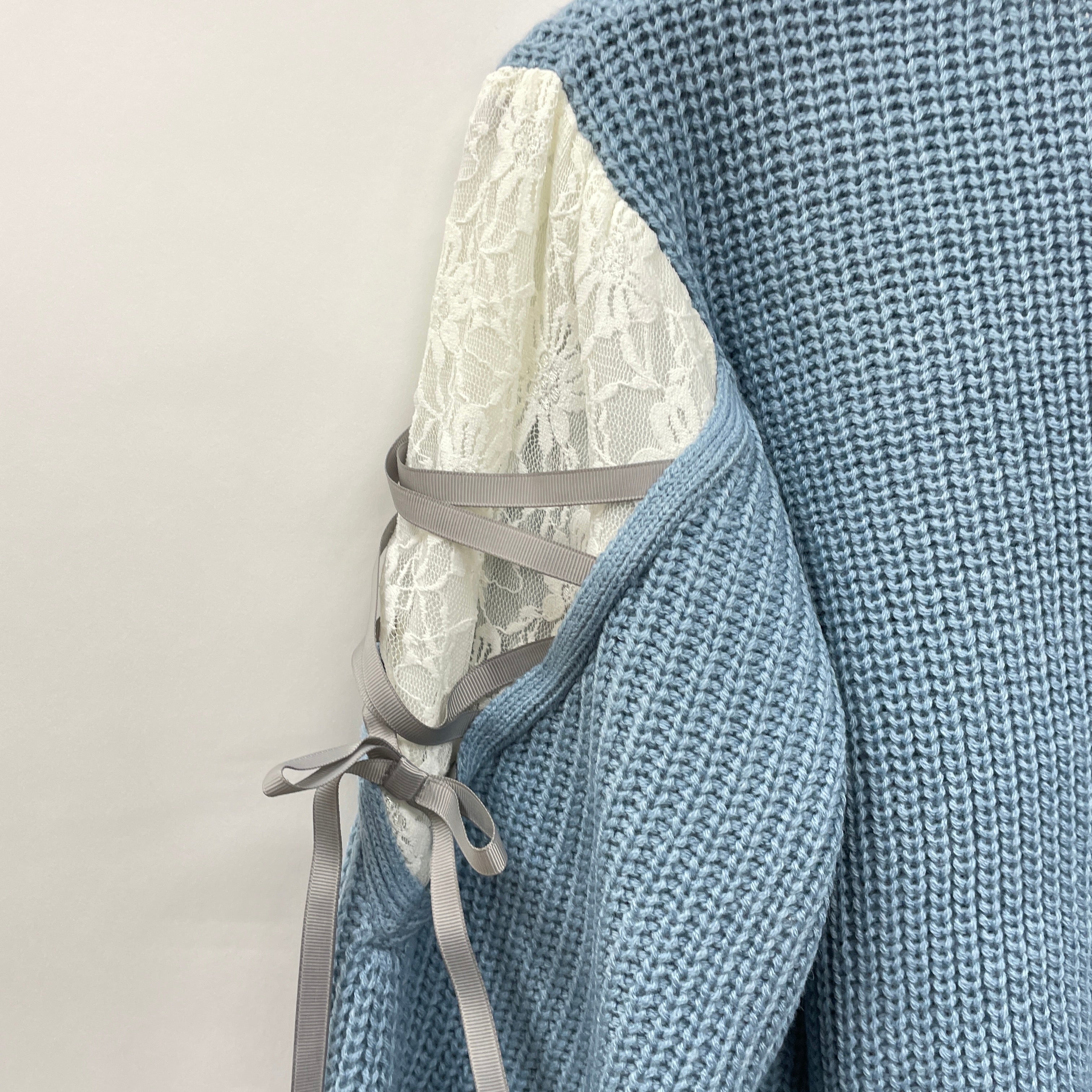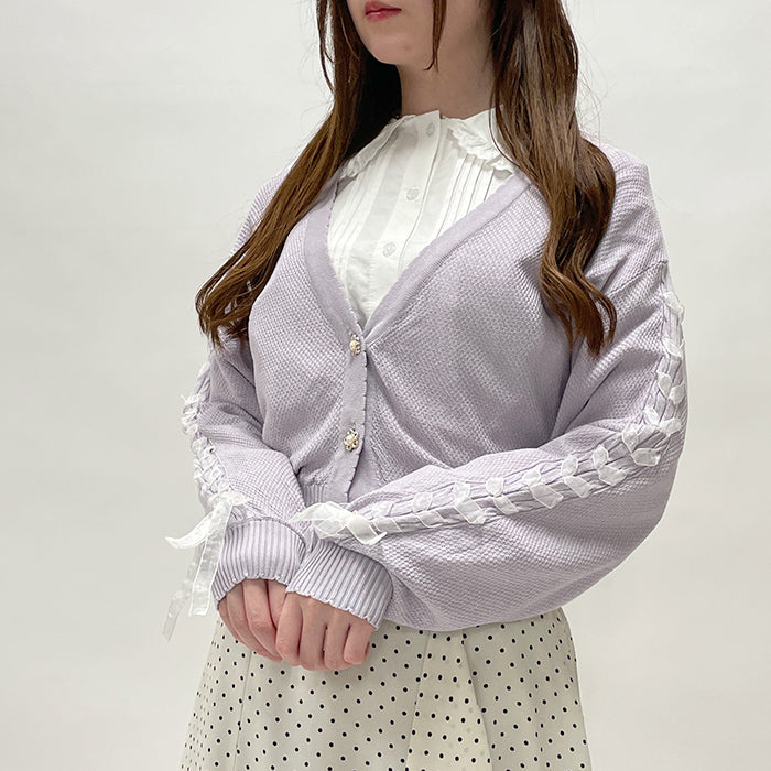 袖レースアップニットカーデ