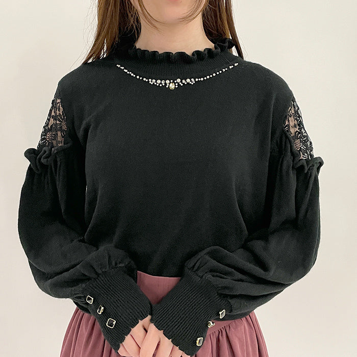 プチハイネックビジューニット