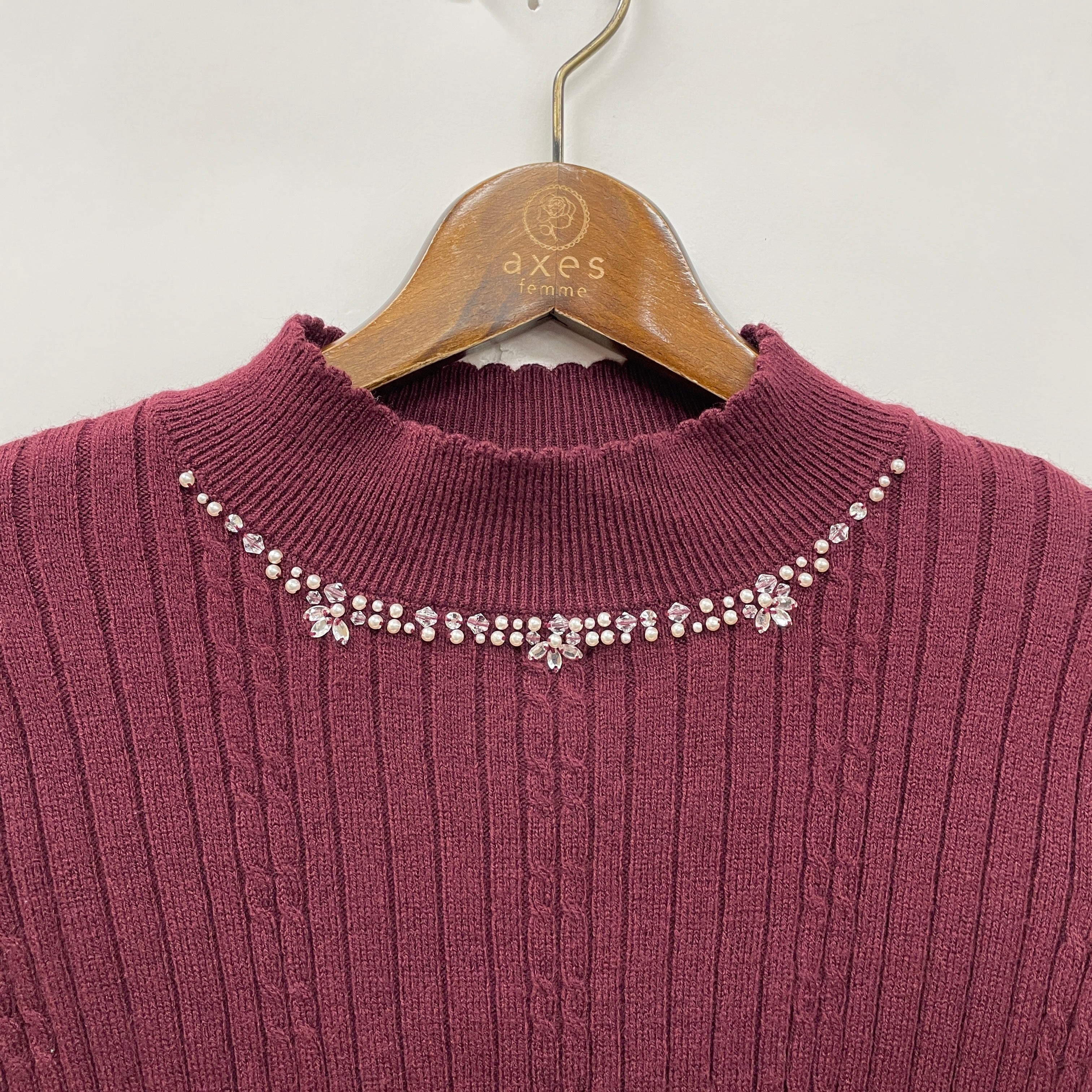 パールネックレス風リブニット