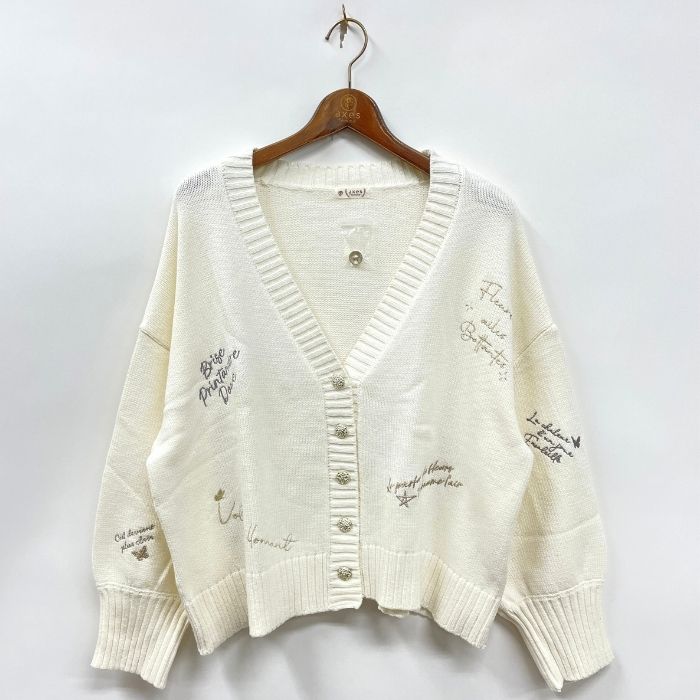 ランダム刺繍ニットカーデ