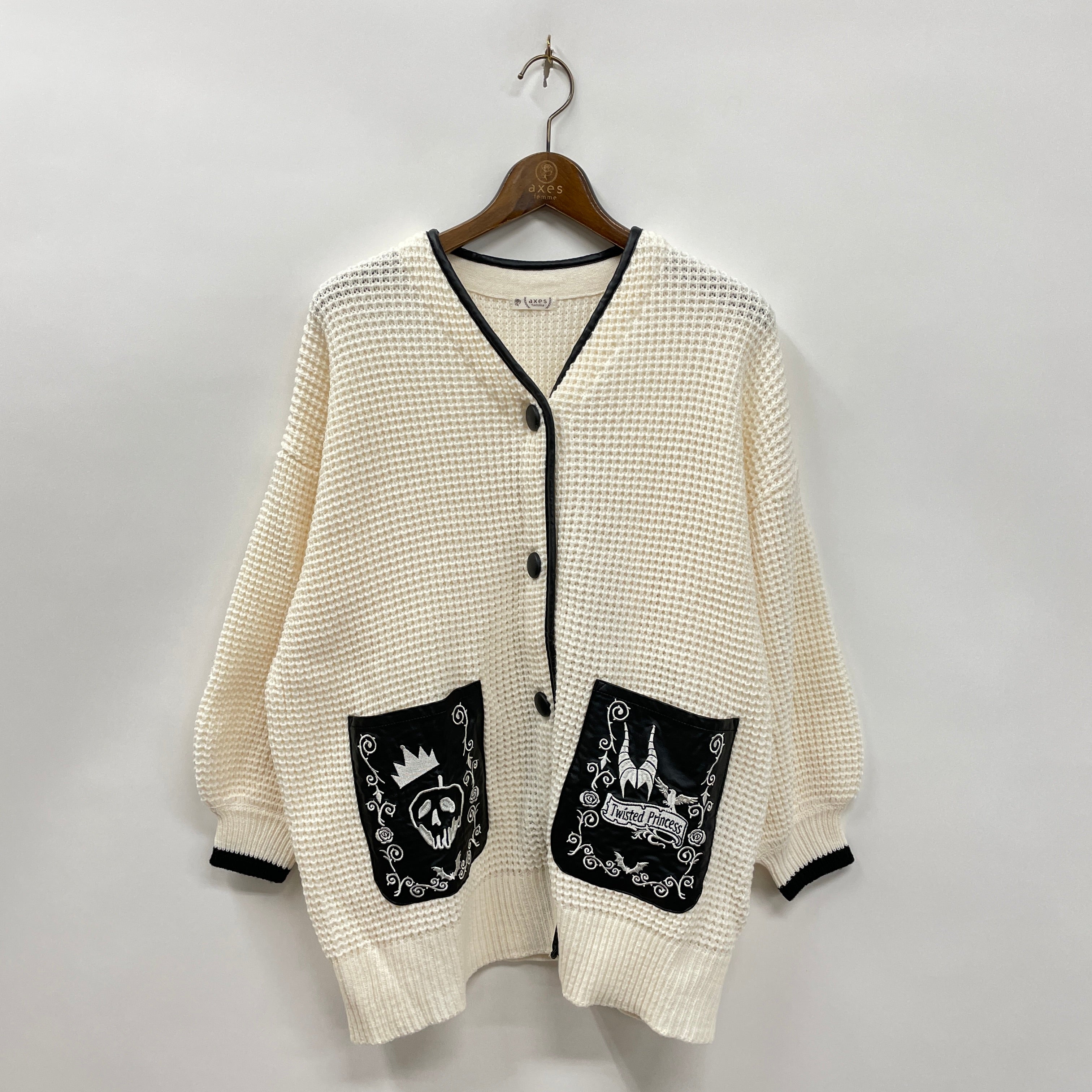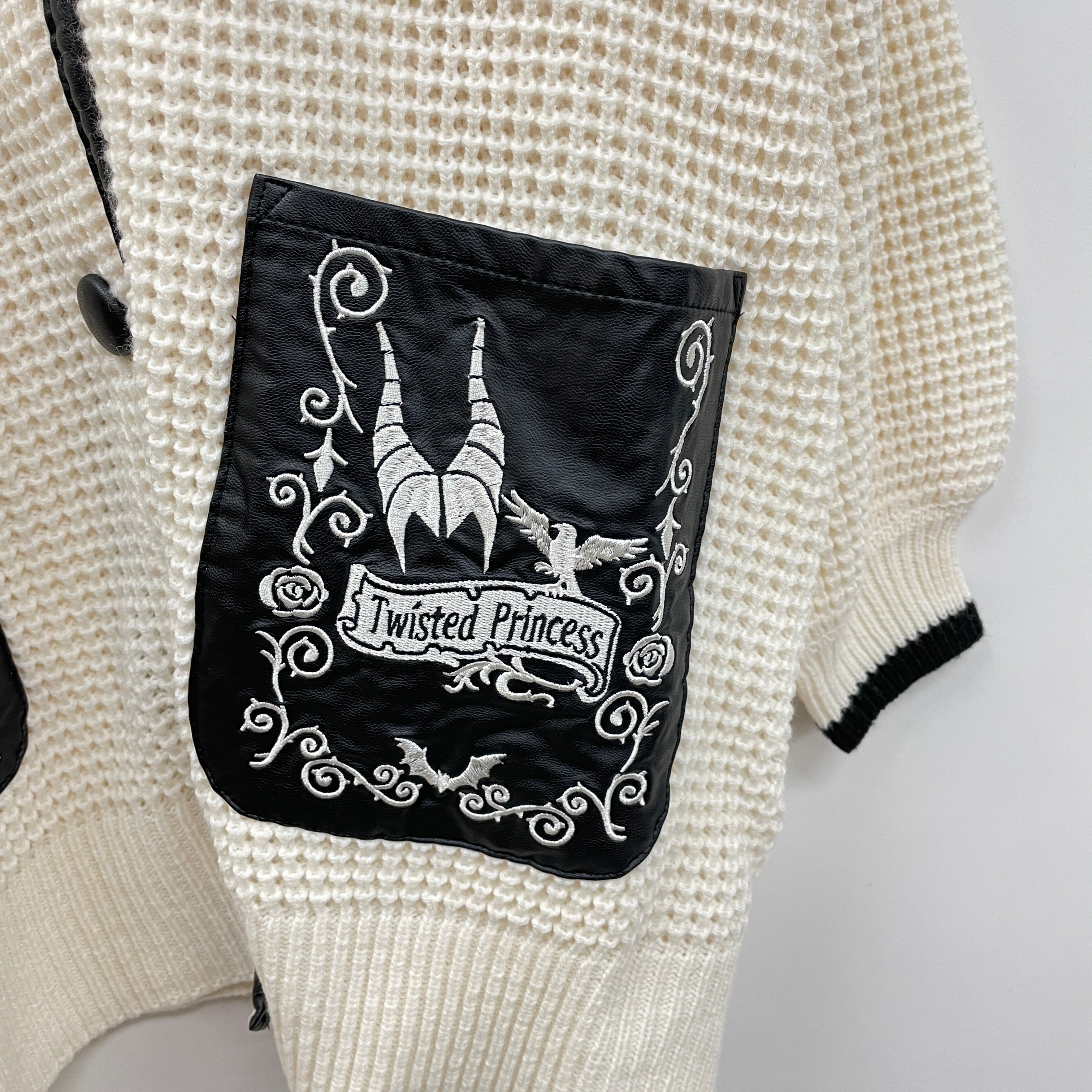 合皮のパイピングがトレンドライクな一着。少し強めの印象の合皮のディテールがヴィランズらしさを演出してくれます。ポケットには『眠れる森の美女』に登場するマレフィセントと、『白雪姫』の魔女をイメージしたモチーフの刺繍が施されています。ウエストのベルトを付けて引き締めるのも、ベルトを外してルーズに着用するのも◎ボディは使い易い無地なので様々なスタイリングに着用頂けます。