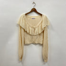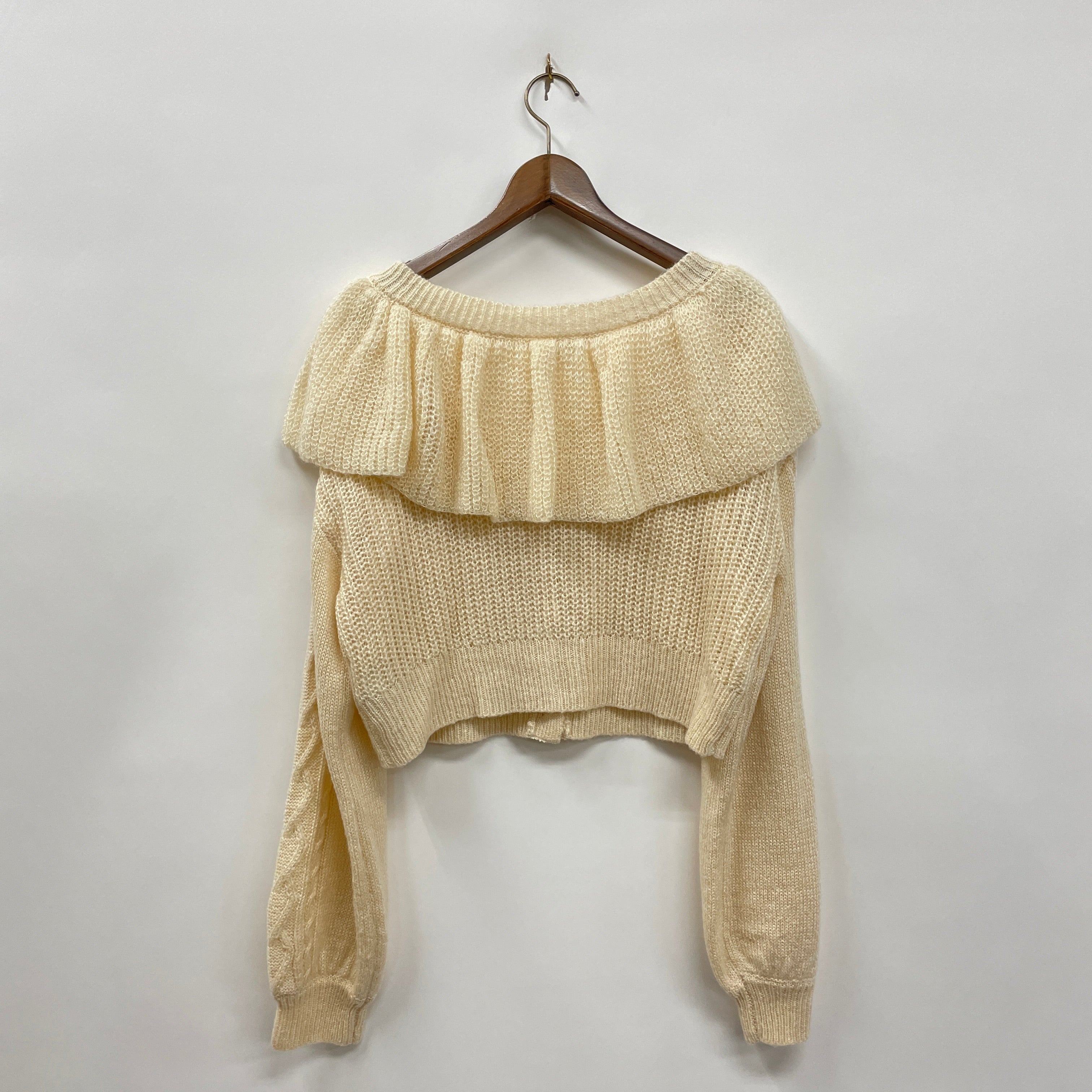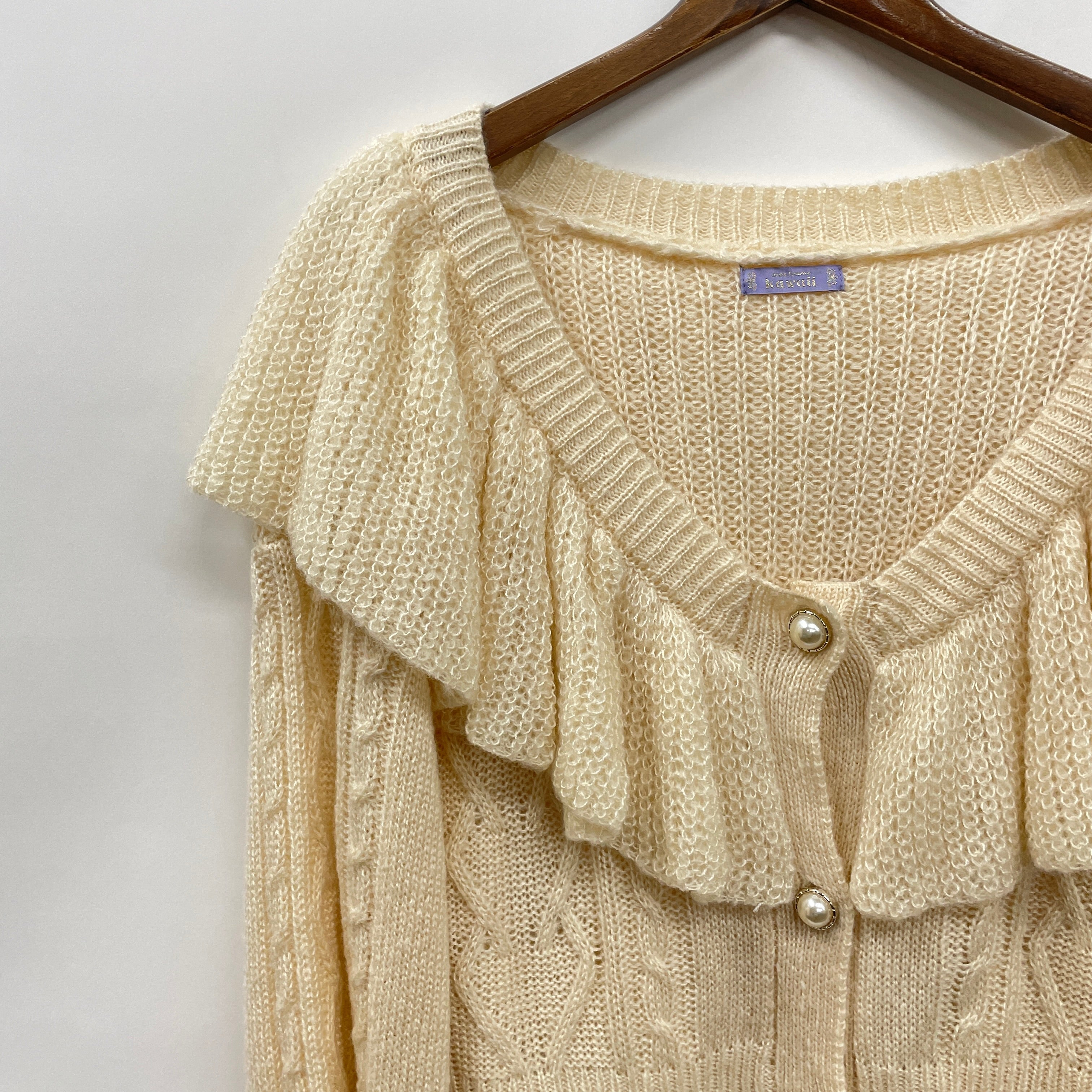 ハート風のケーブル編みが施された厚手のニットカーデです。ゆったりとしたサイズ感で着心地も抜群です。