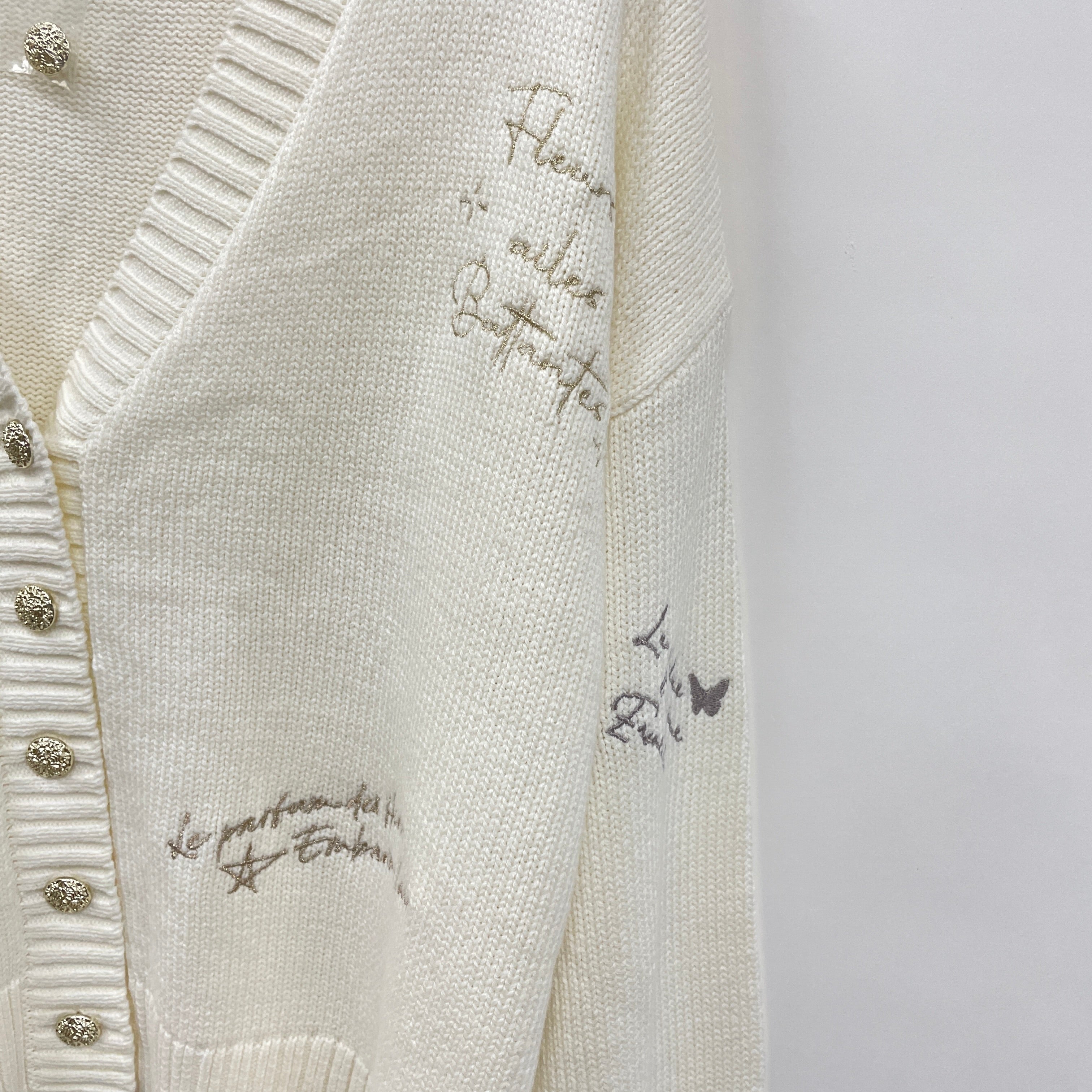 全体に華やかに飛んだアソートロゴ刺繍がポイントのニットカーディガンです。