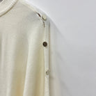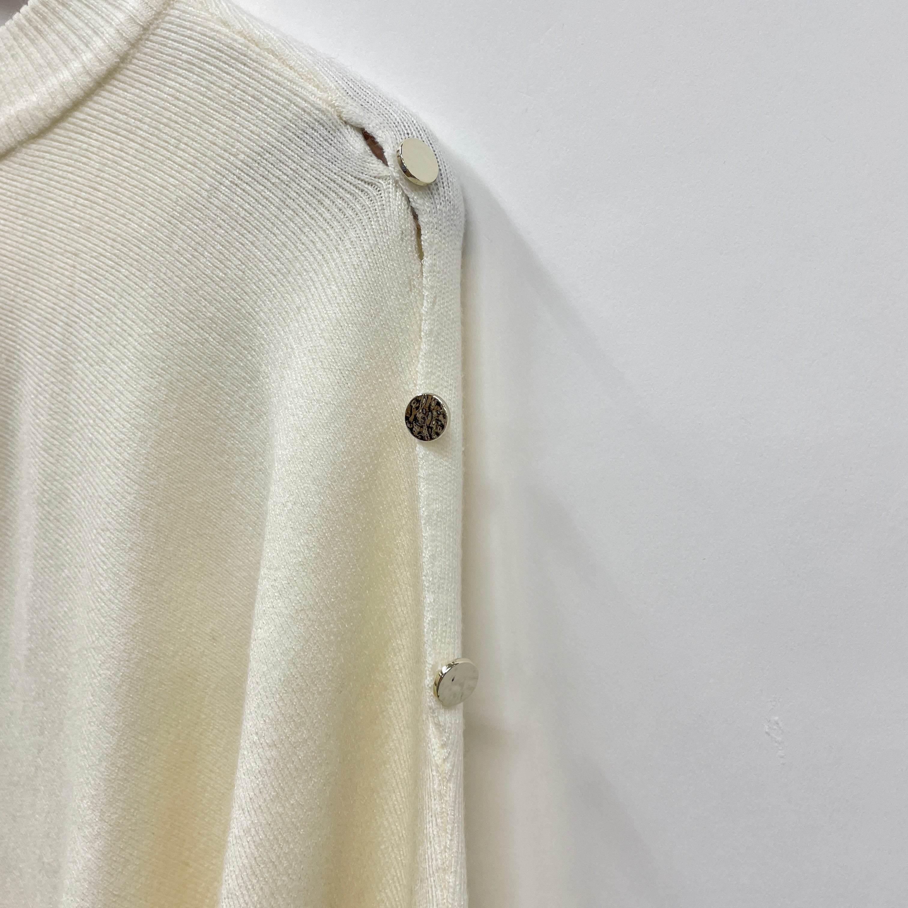 トレンドライクな金ボタンを肩に並べてフェミニン感をプラス。