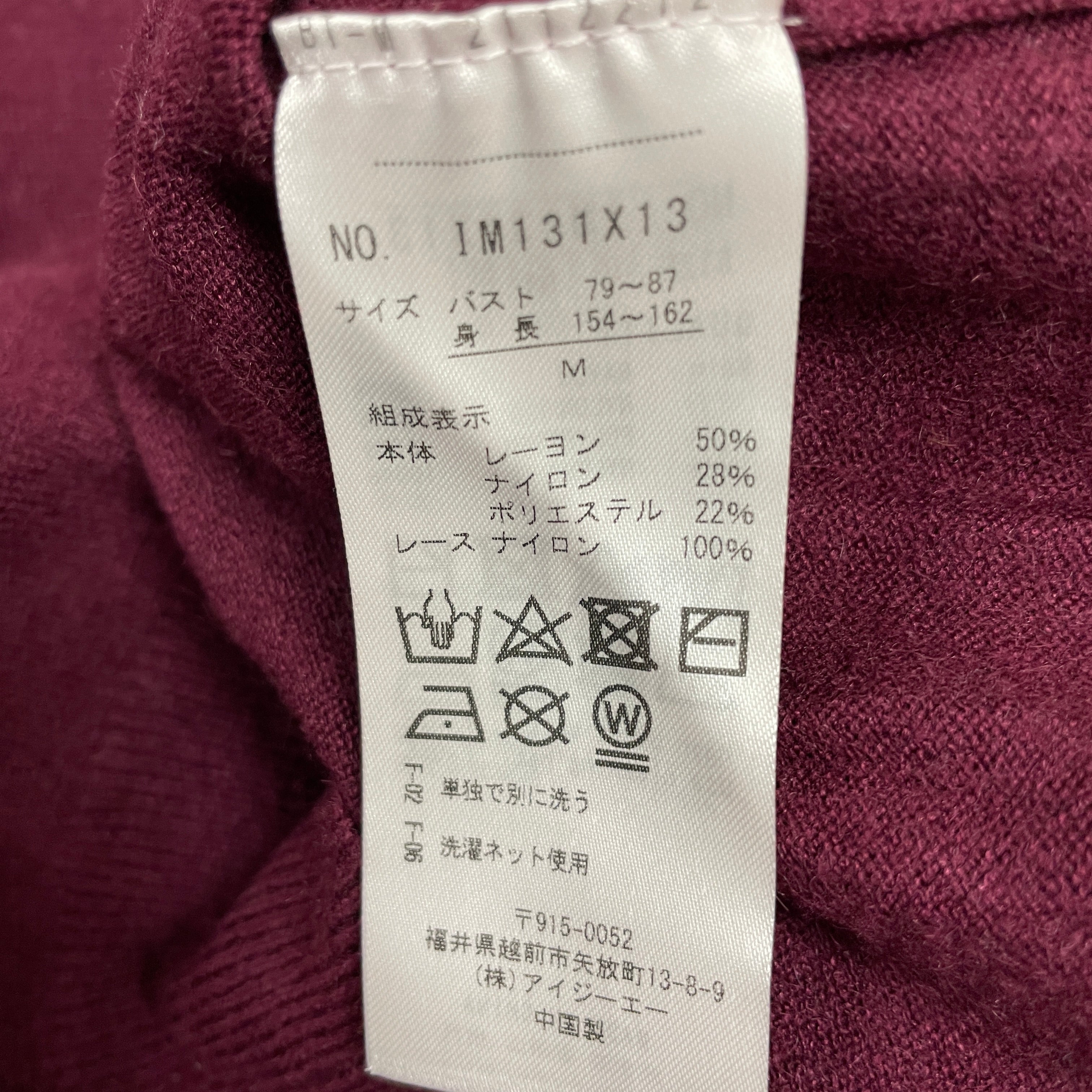 | サイズ | 着丈 | バスト | 肩幅 | 袖丈 | 袖口 |