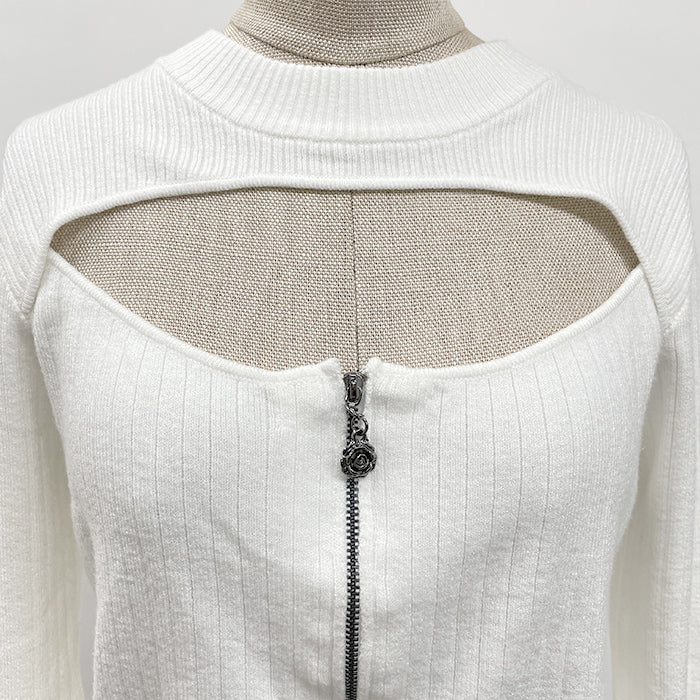 センタージップフレア袖ニット