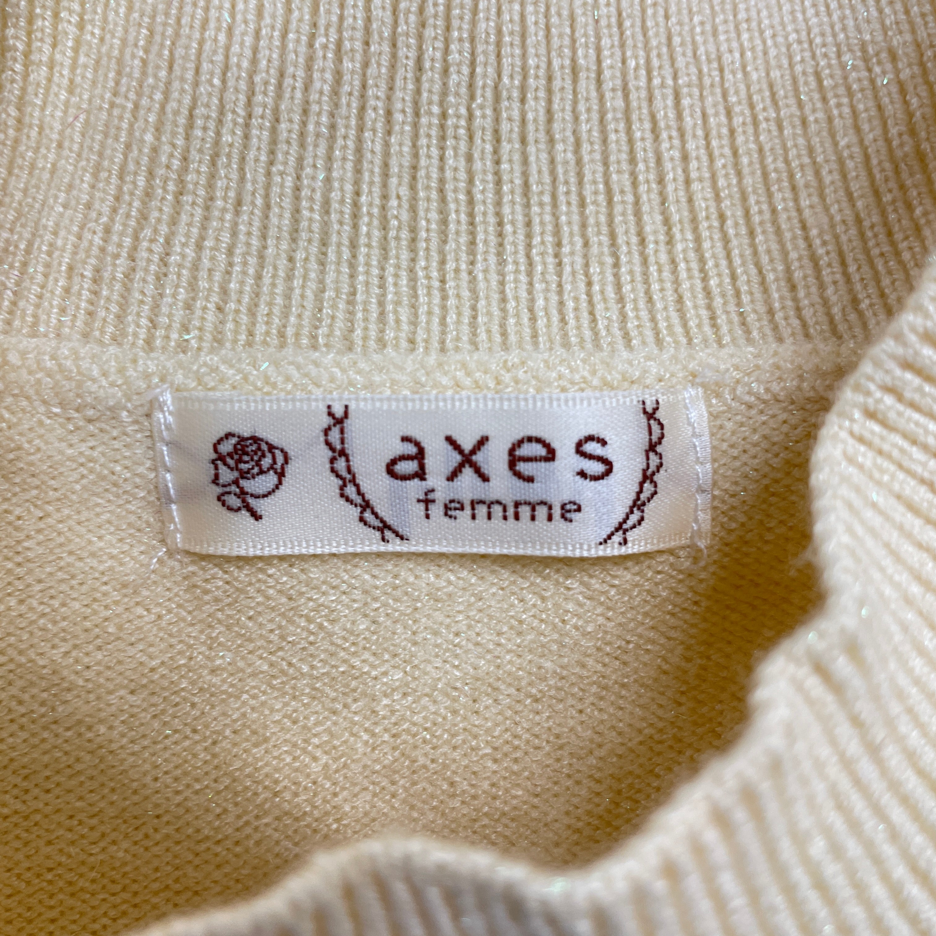 引き続きトレンドのラメ感を、ニット自体にオーロラ色の糸を編み込むことで上品なキラッとした見え方に。