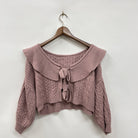 大き目のフリルとショート丈でトレンド感をプラスしたニットカーディガンです。