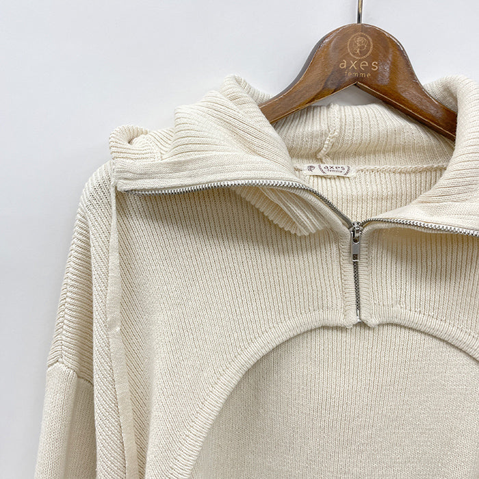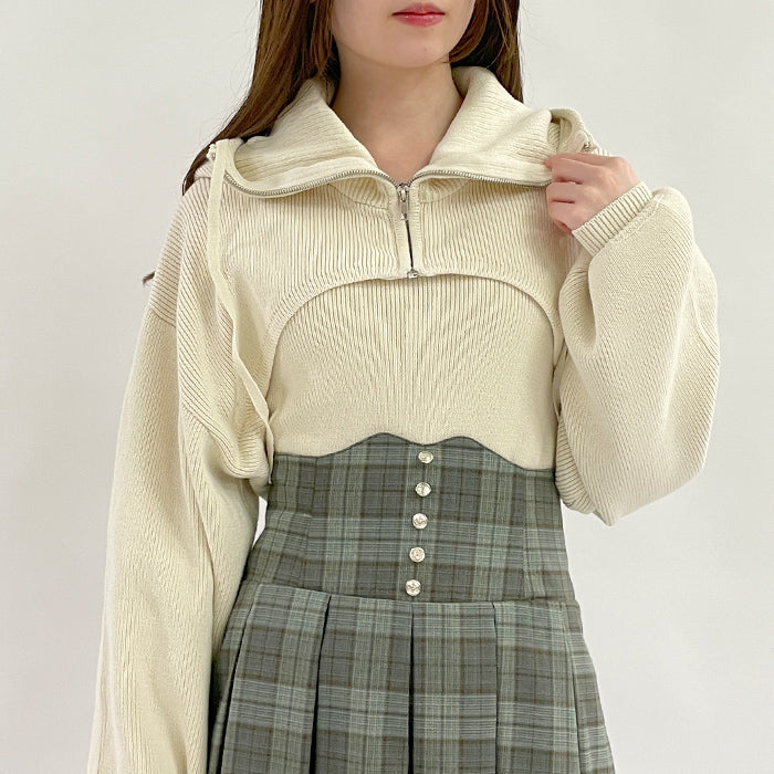 バラクラバ風のフード付きニットとニットタンクがセットになったアイテムです。