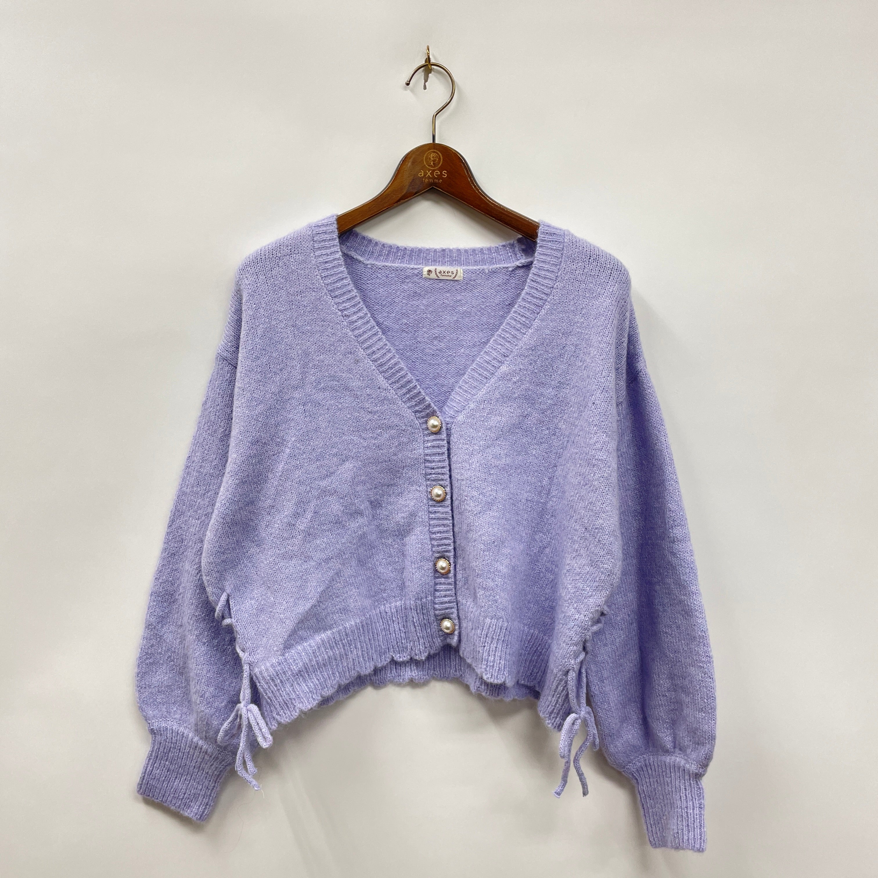 今年らしいふんわりした肌触りのニットカーディガンです。