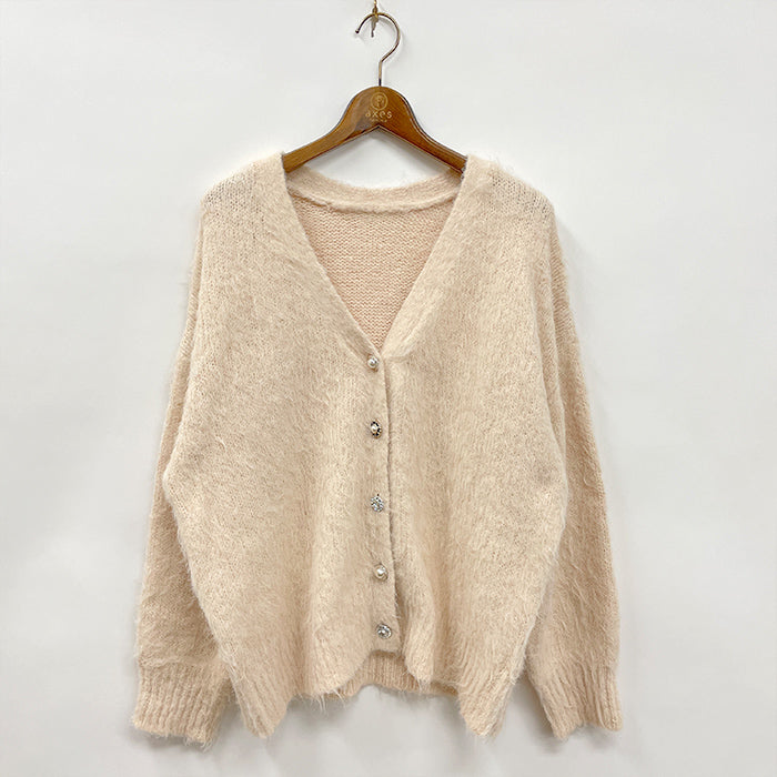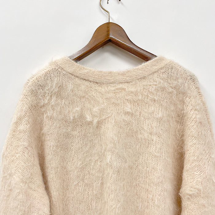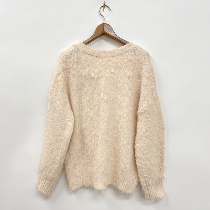 毛足のながいフェザーニットを使用したニットカーディガンです。