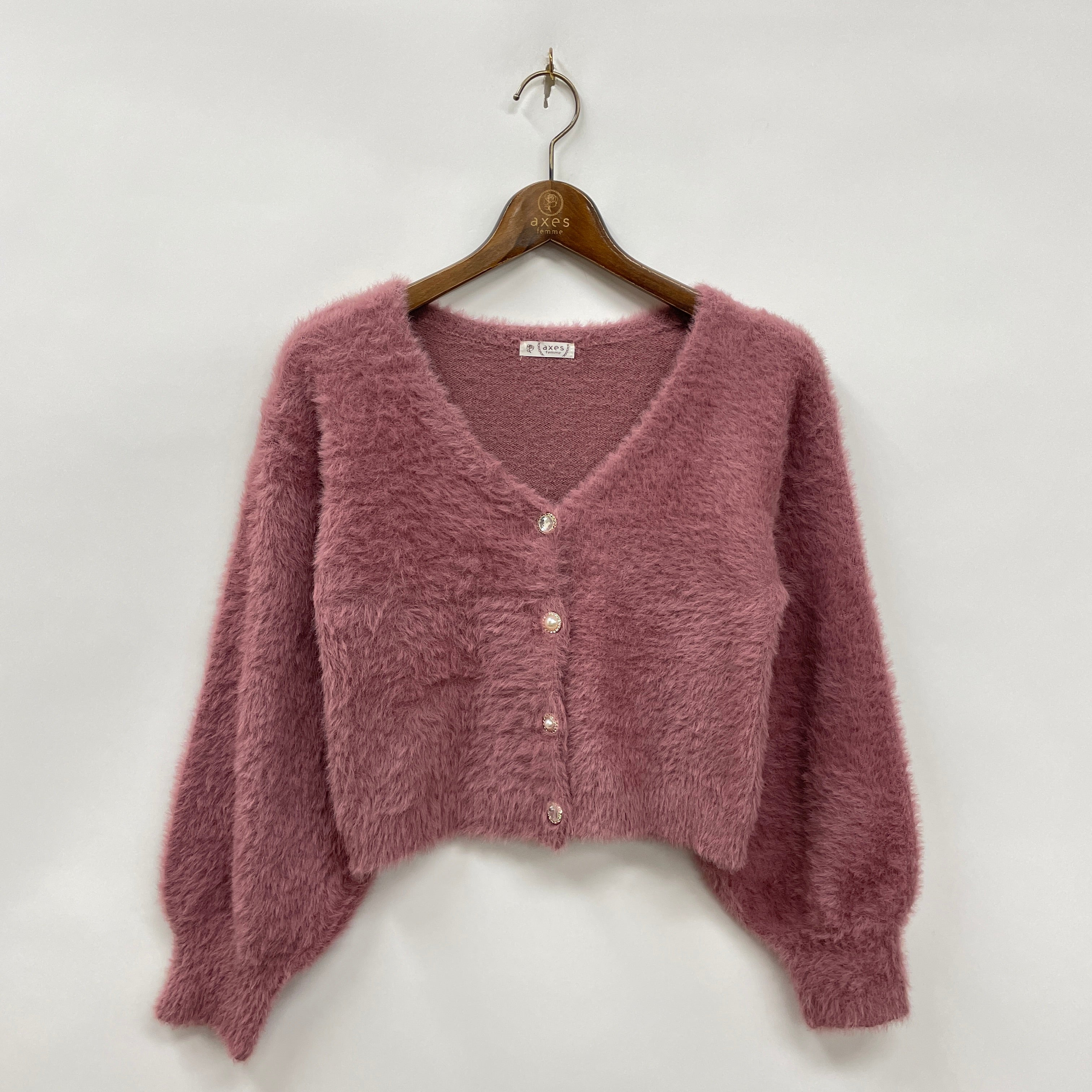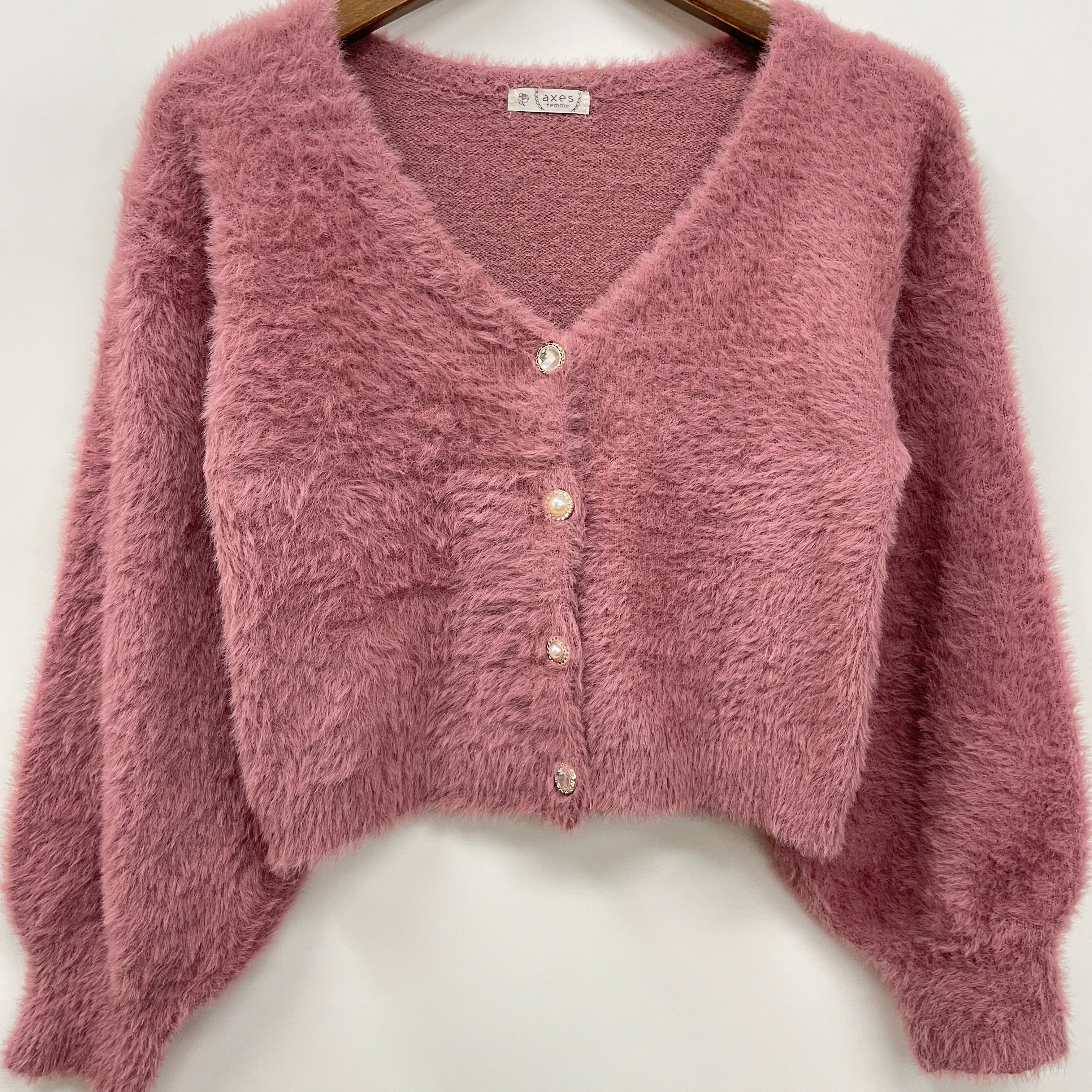 今年トレンドのふわふわフェザーニットのカーディガンです。