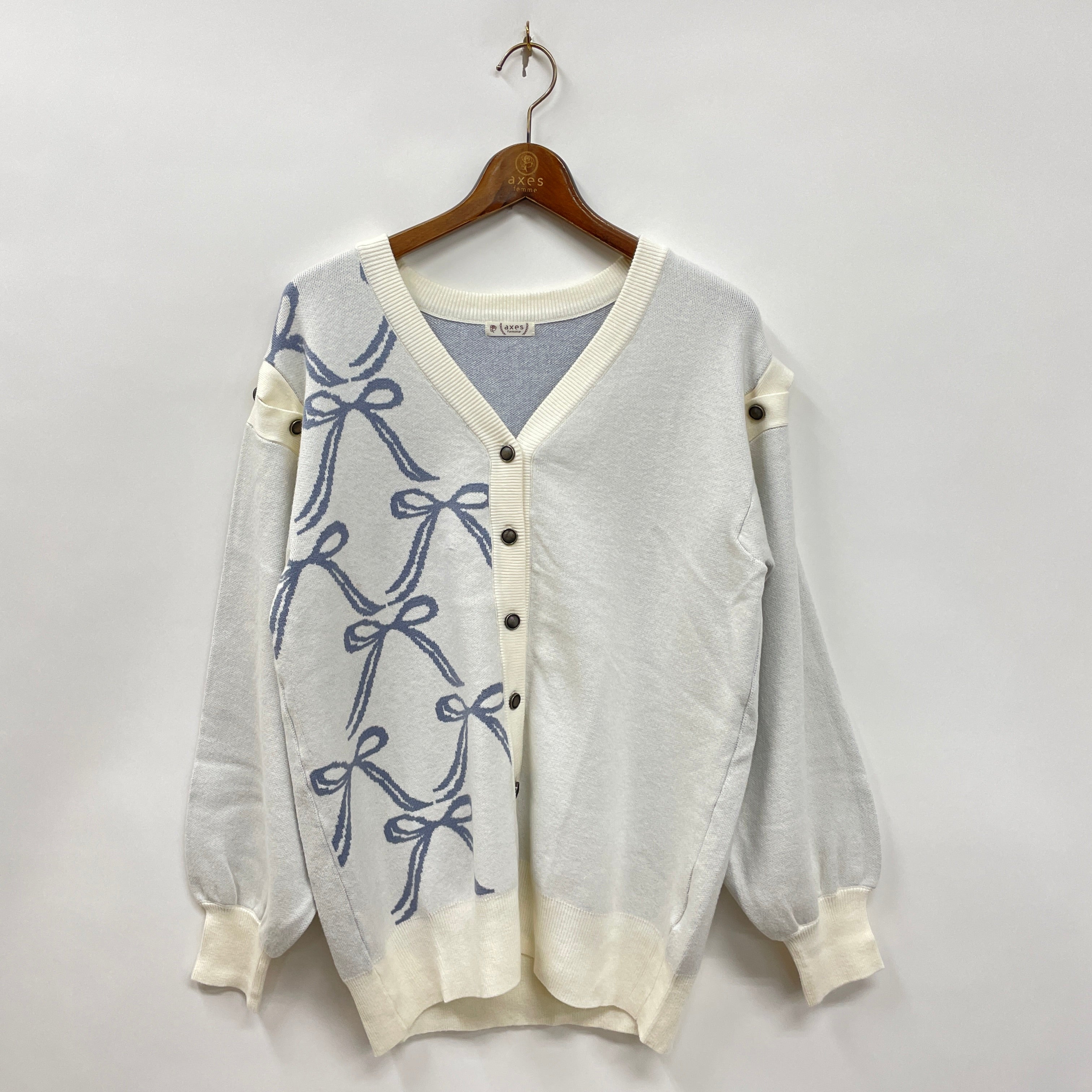 トレンドのリボン柄にときめくニットカーディガンが登場です♪