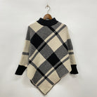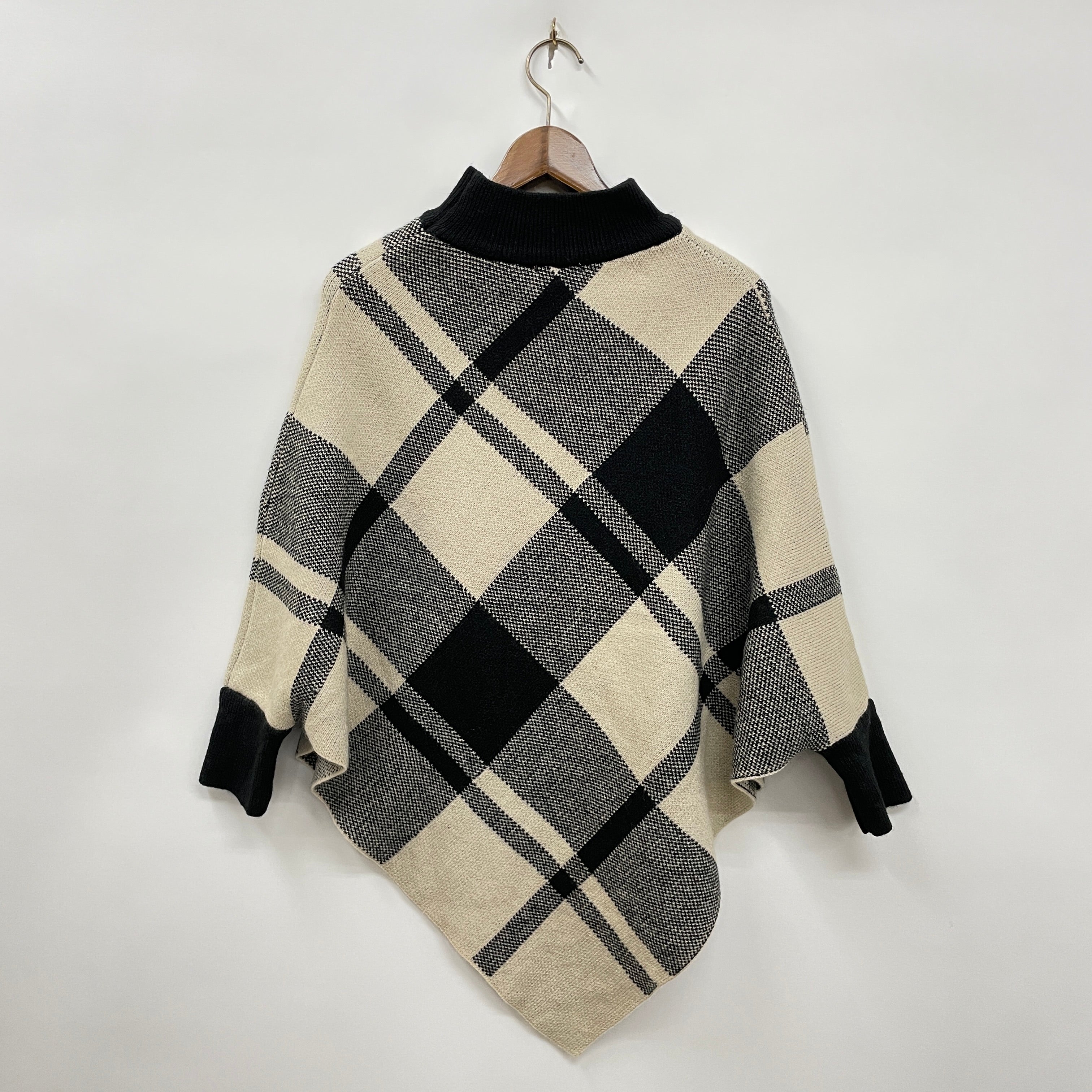 大判チェック柄ニットポンチョ