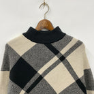 大判チェック柄が目を引くニットポンチョです。