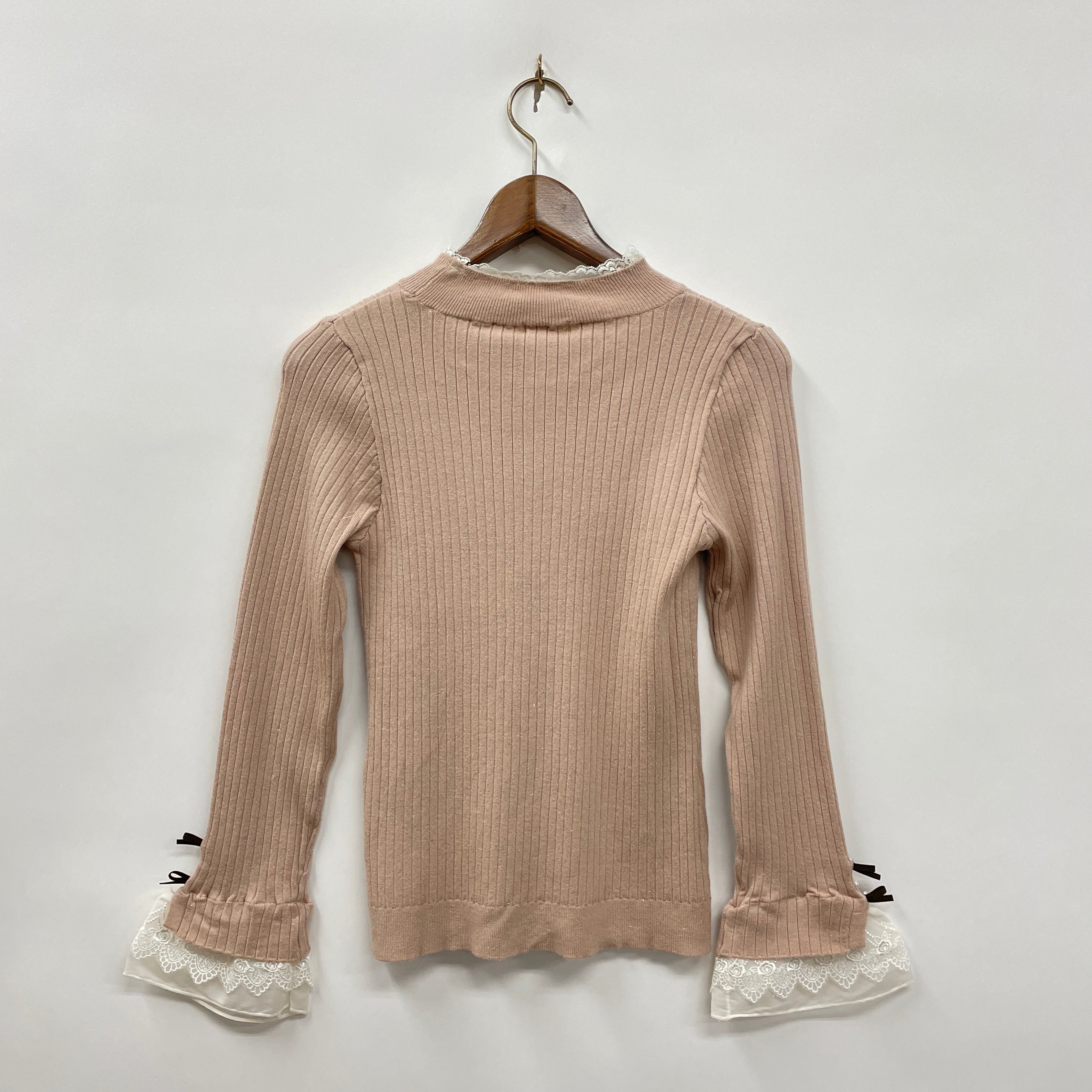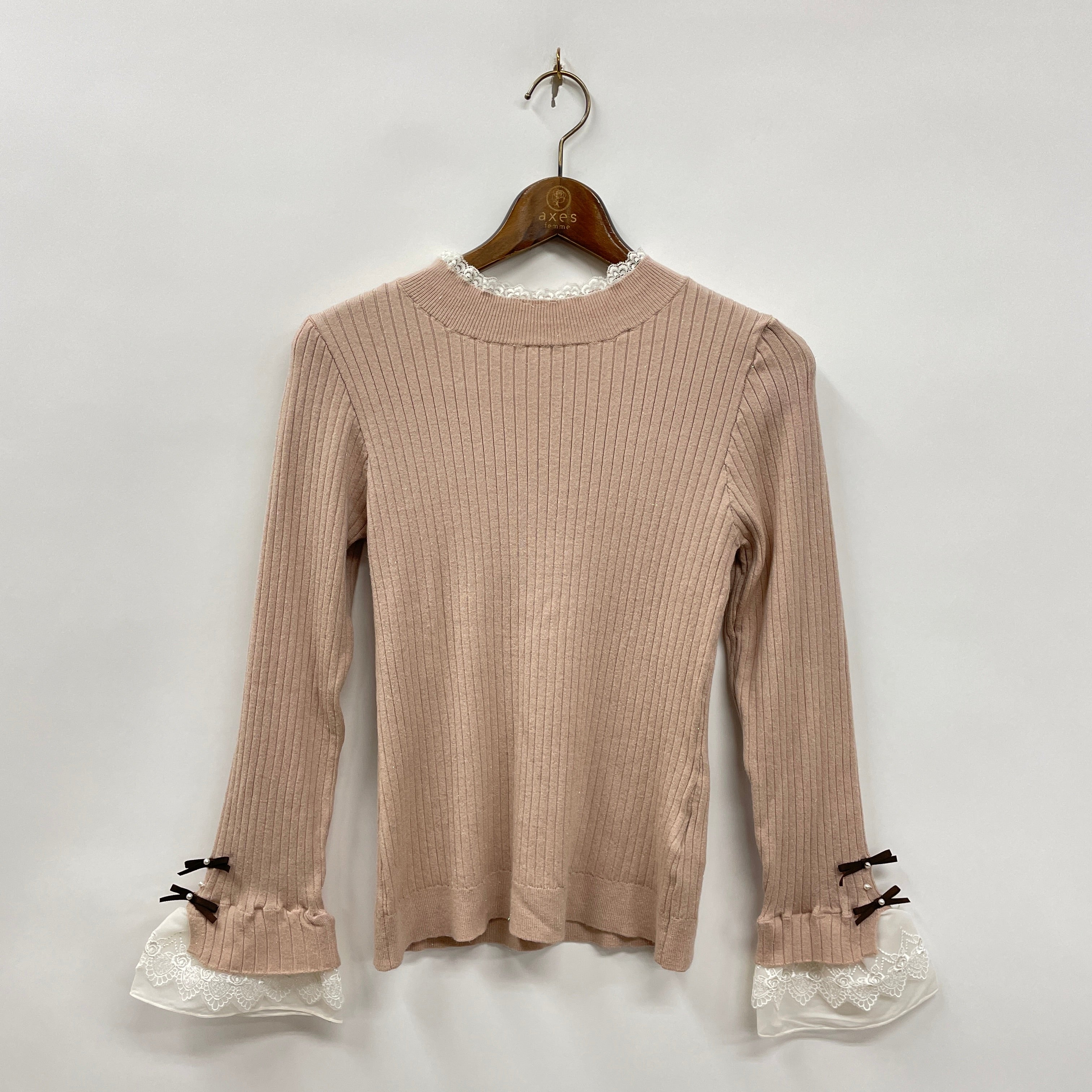 リボンをあしらった、チュールレース×オーガンジーの袖口デザインがポイントのニットトップスです。