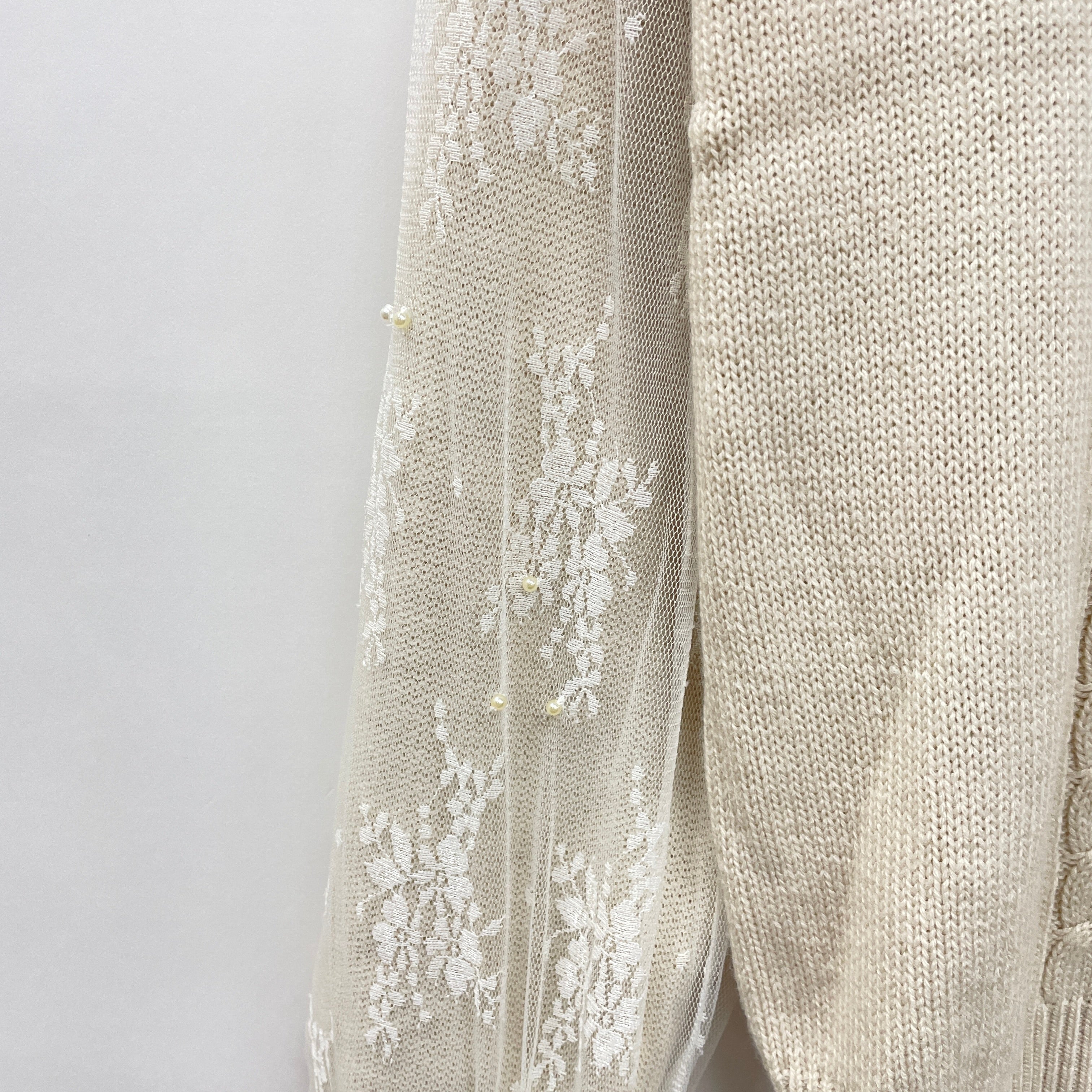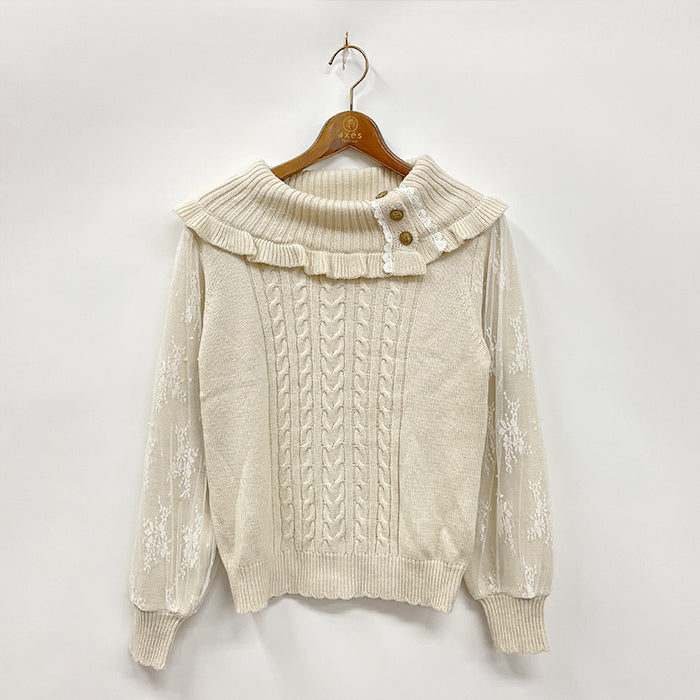 釦付き袖レースニットPO