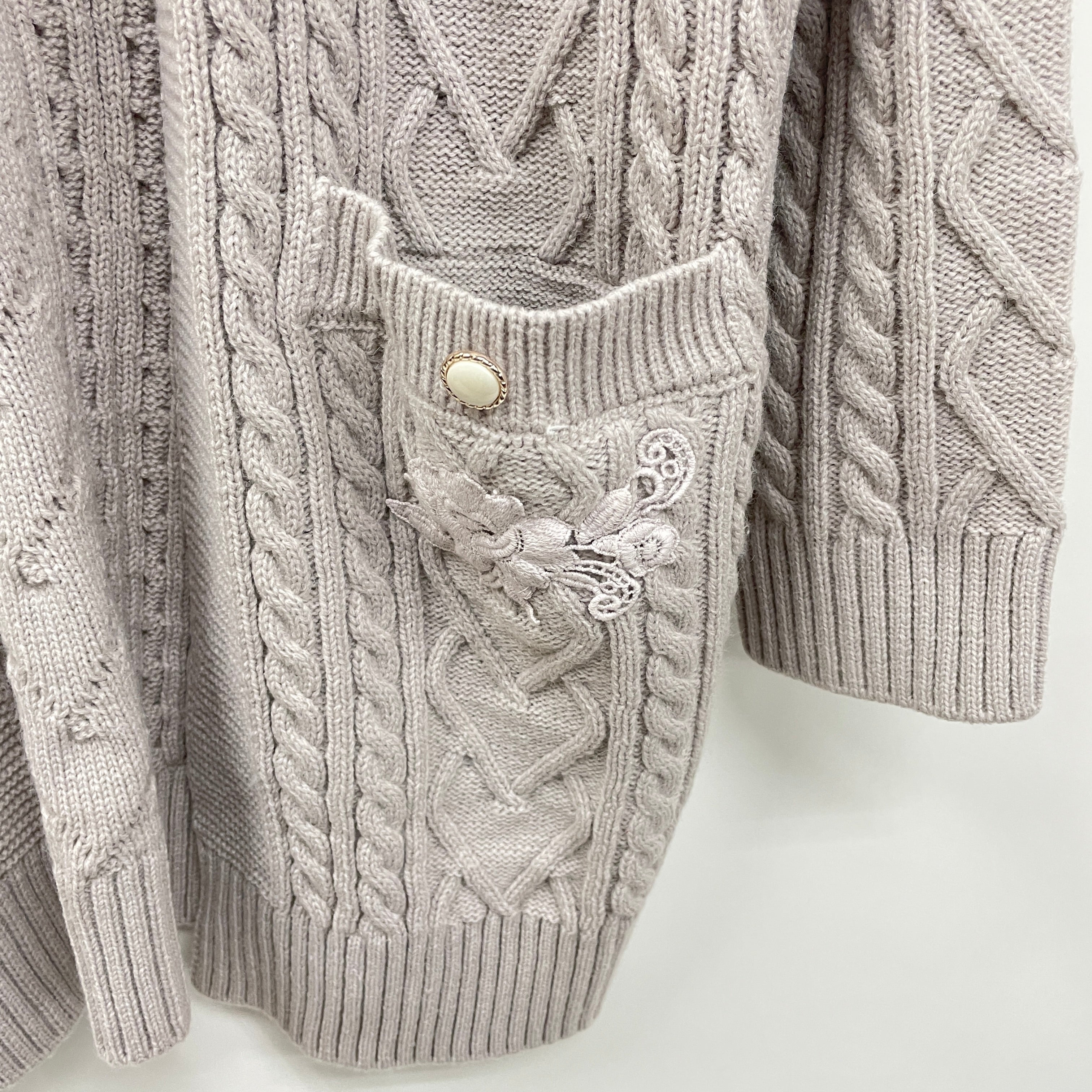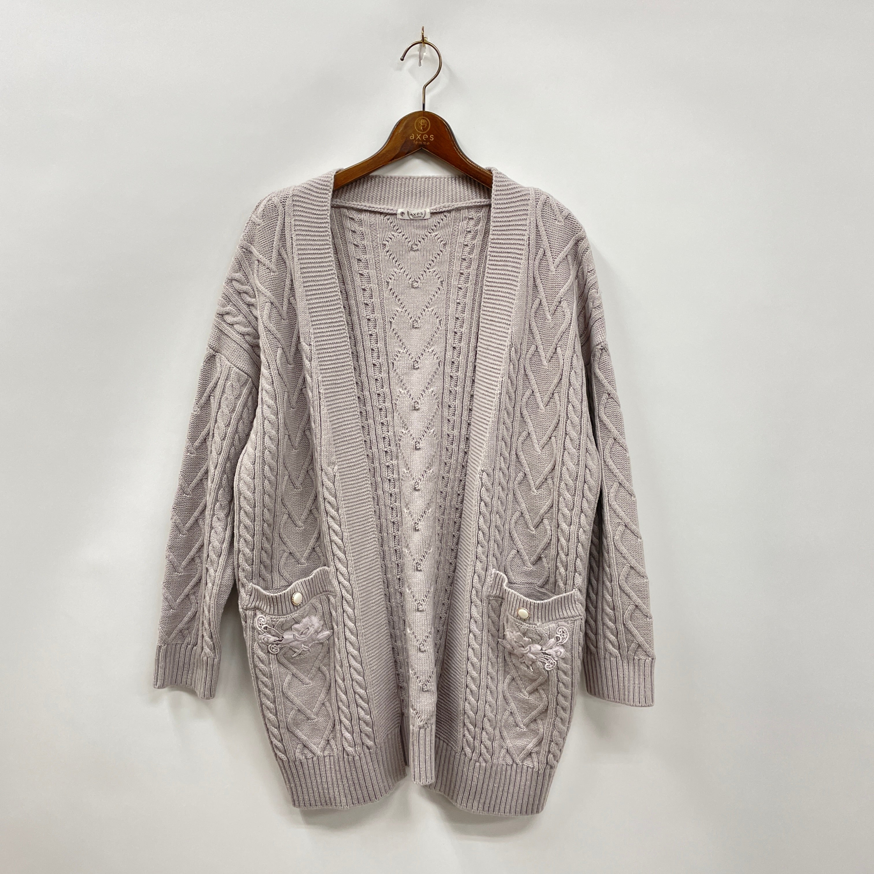ロング丈で暖かい、サッと羽織りやすいトッパータイプのニットカーディガンです。大きめのポケット付が嬉しいポイント。パンツスタイルや、ワンピースの上に合わせるのもおすすめです。