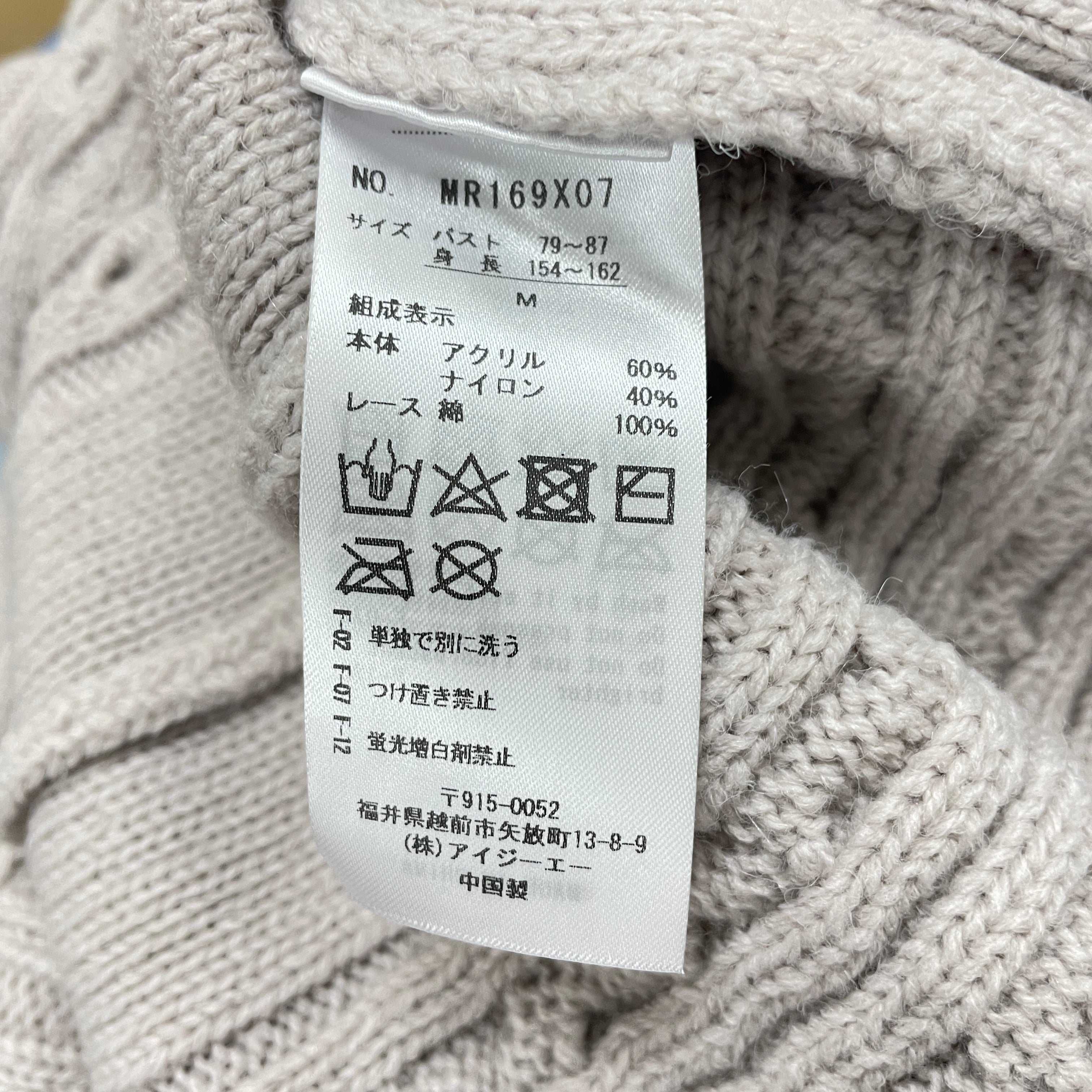 | サイズ | 着丈 | バスト | 肩幅 | 袖丈 | 袖口 |