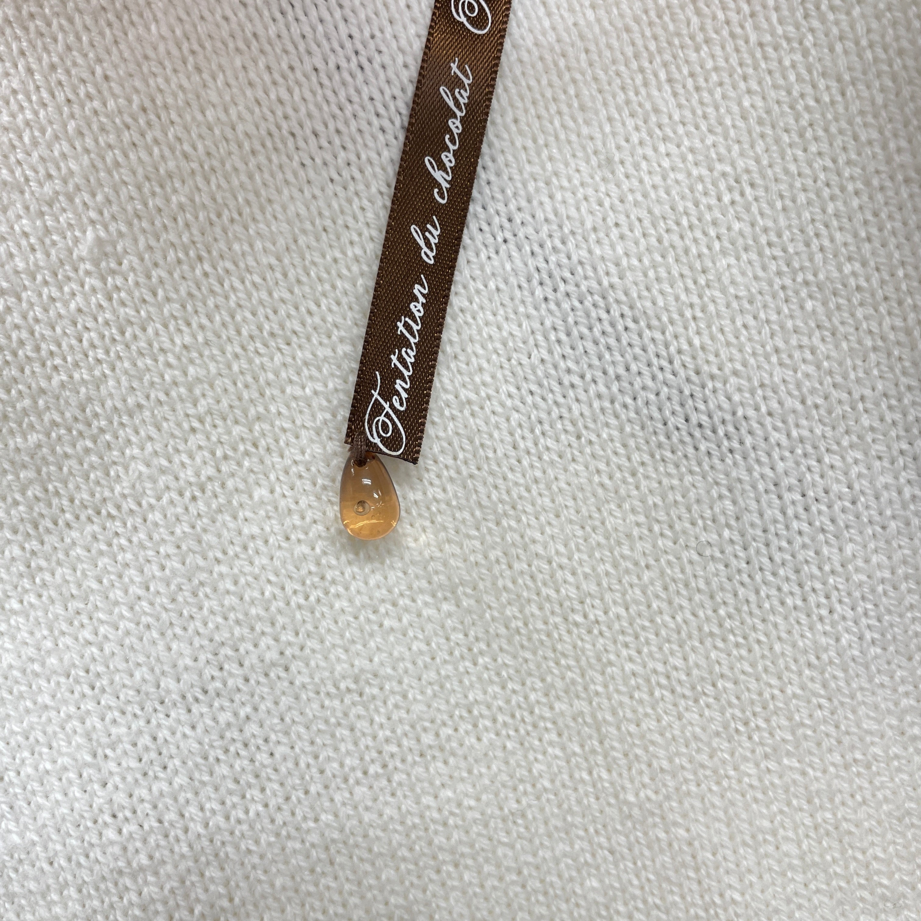 リボン先には、まるでチョコレートが垂れているようなしずく型ビーズを垂らしています。