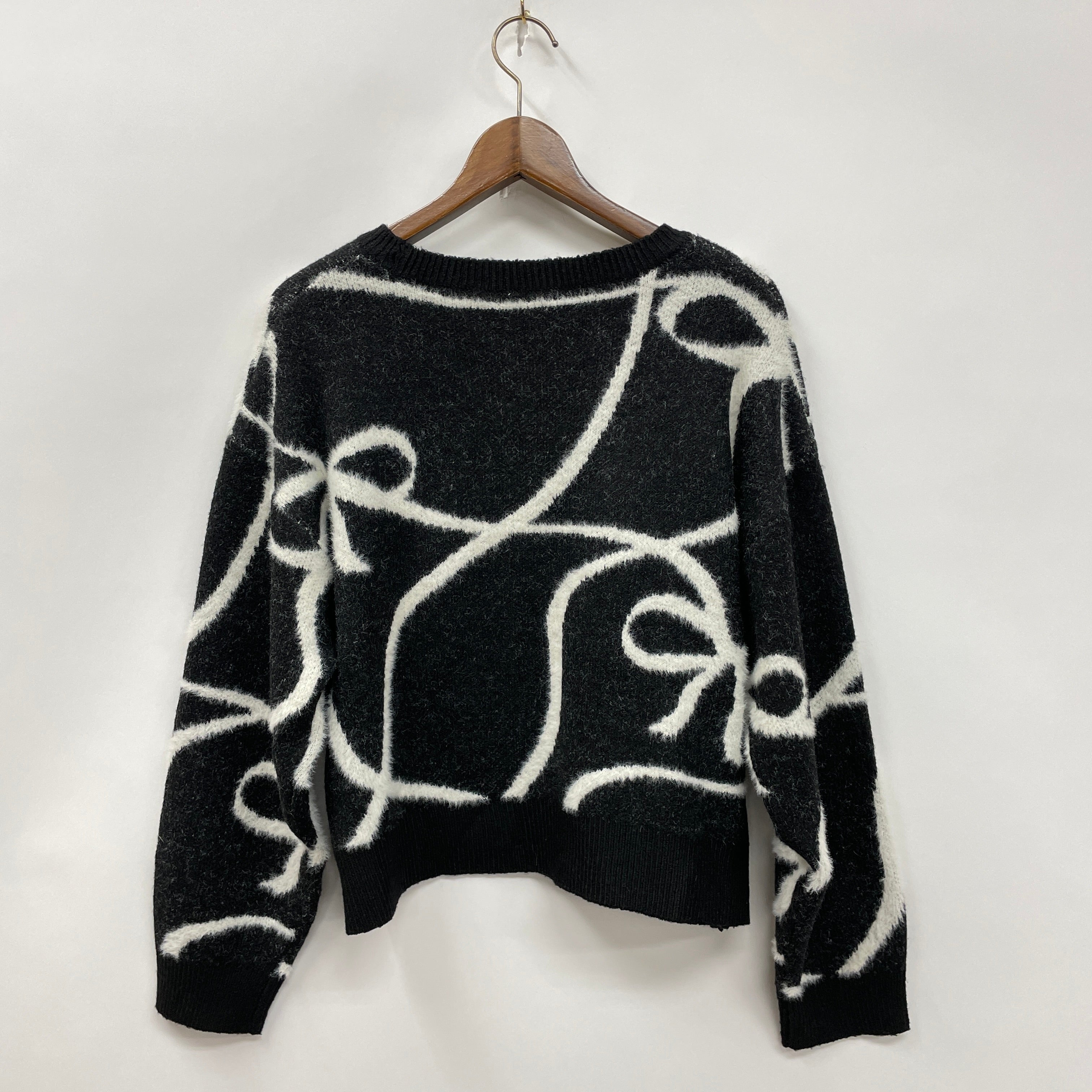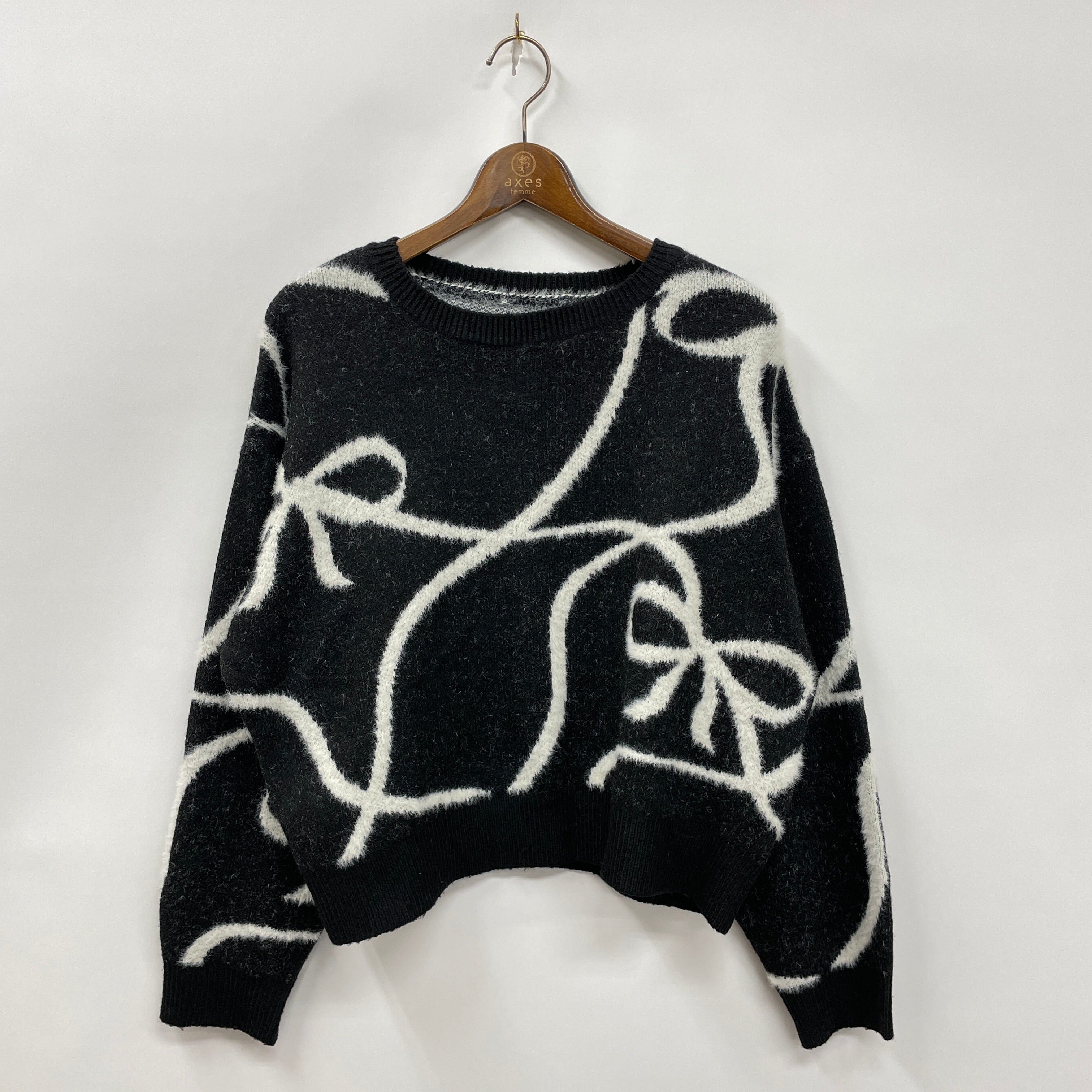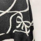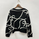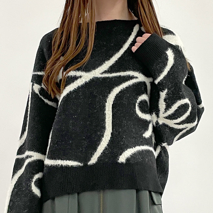 ・手描き風のリボン柄が目を惹くゆったりめニット。