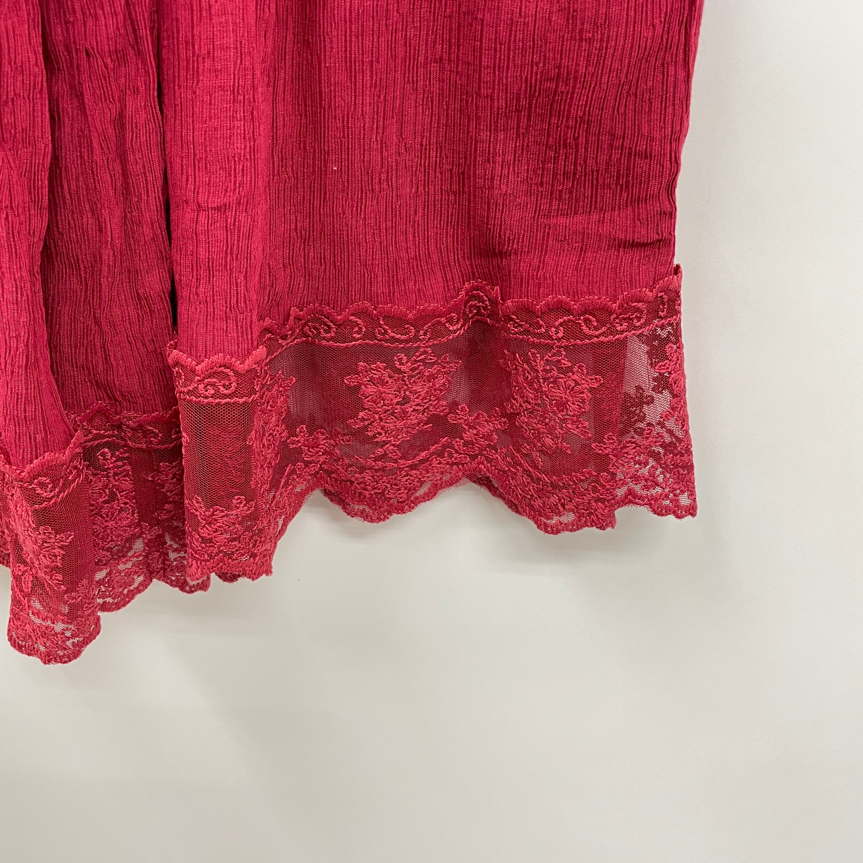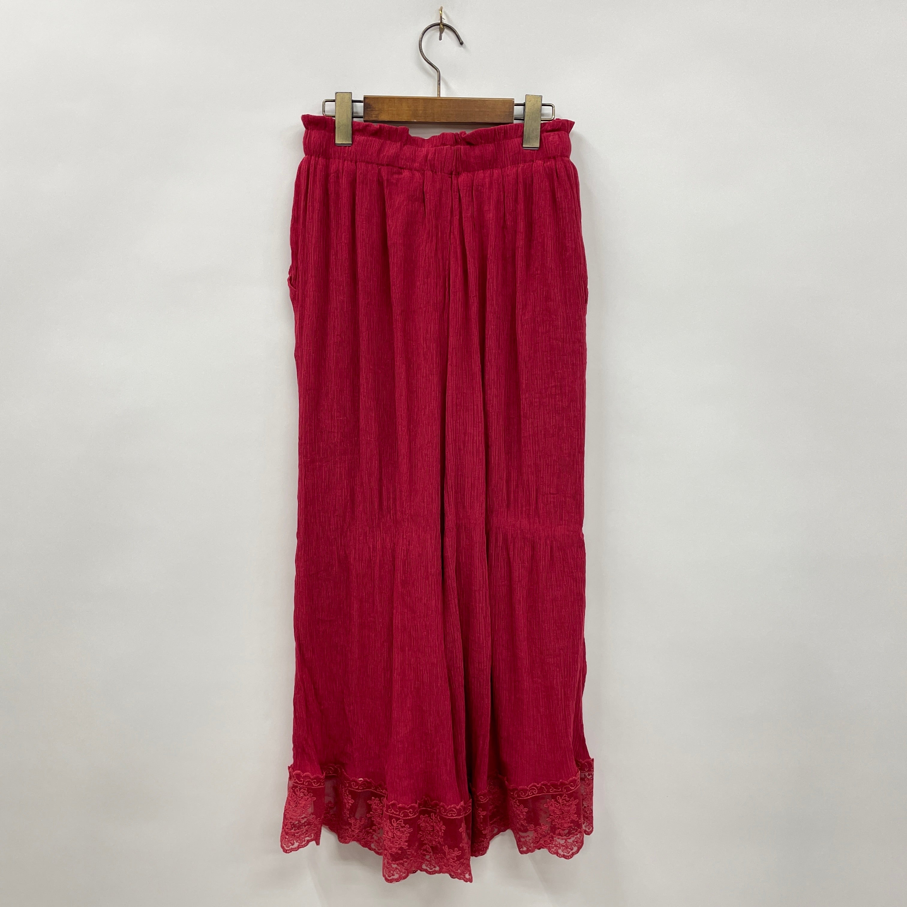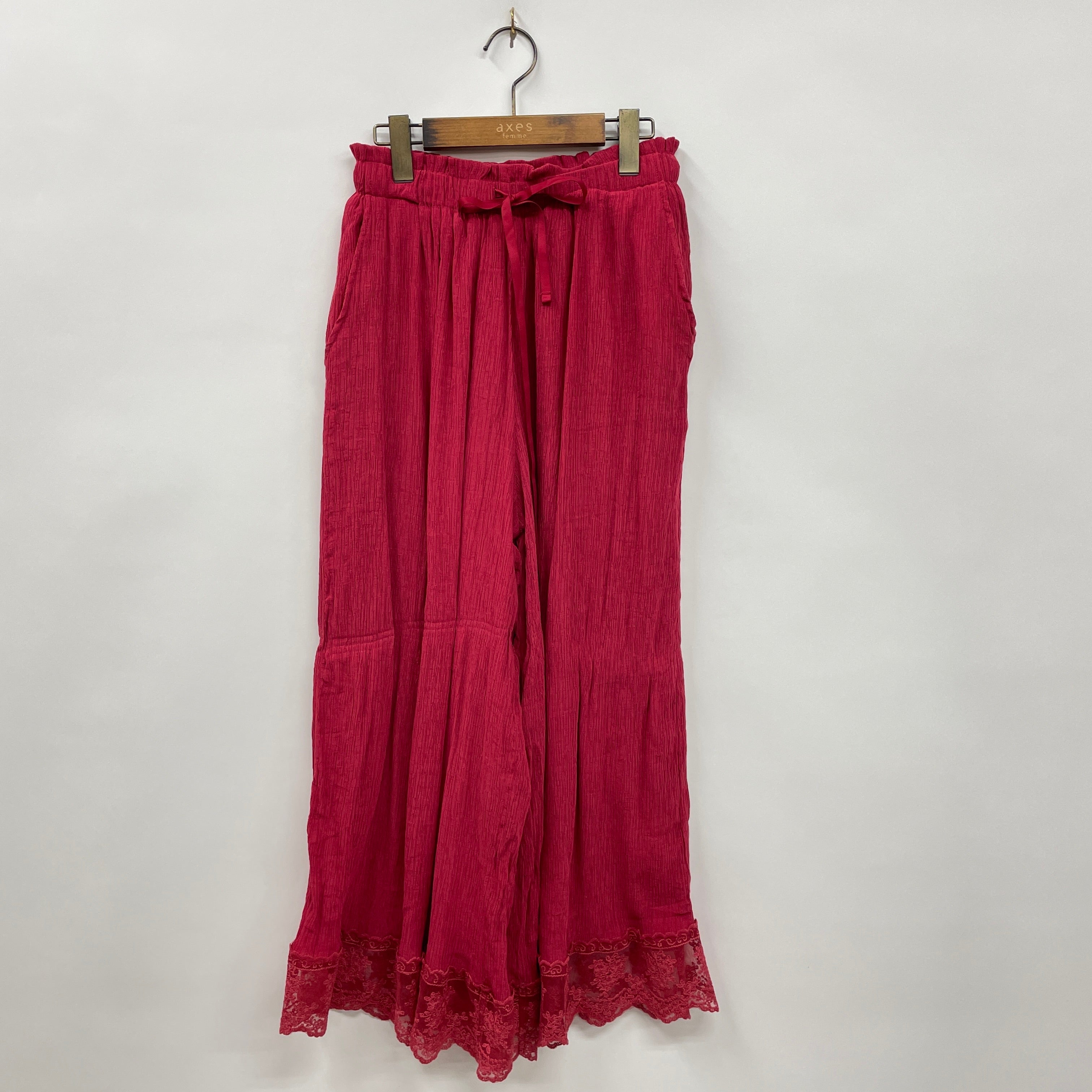 裾レース楊柳ワイドパンツ