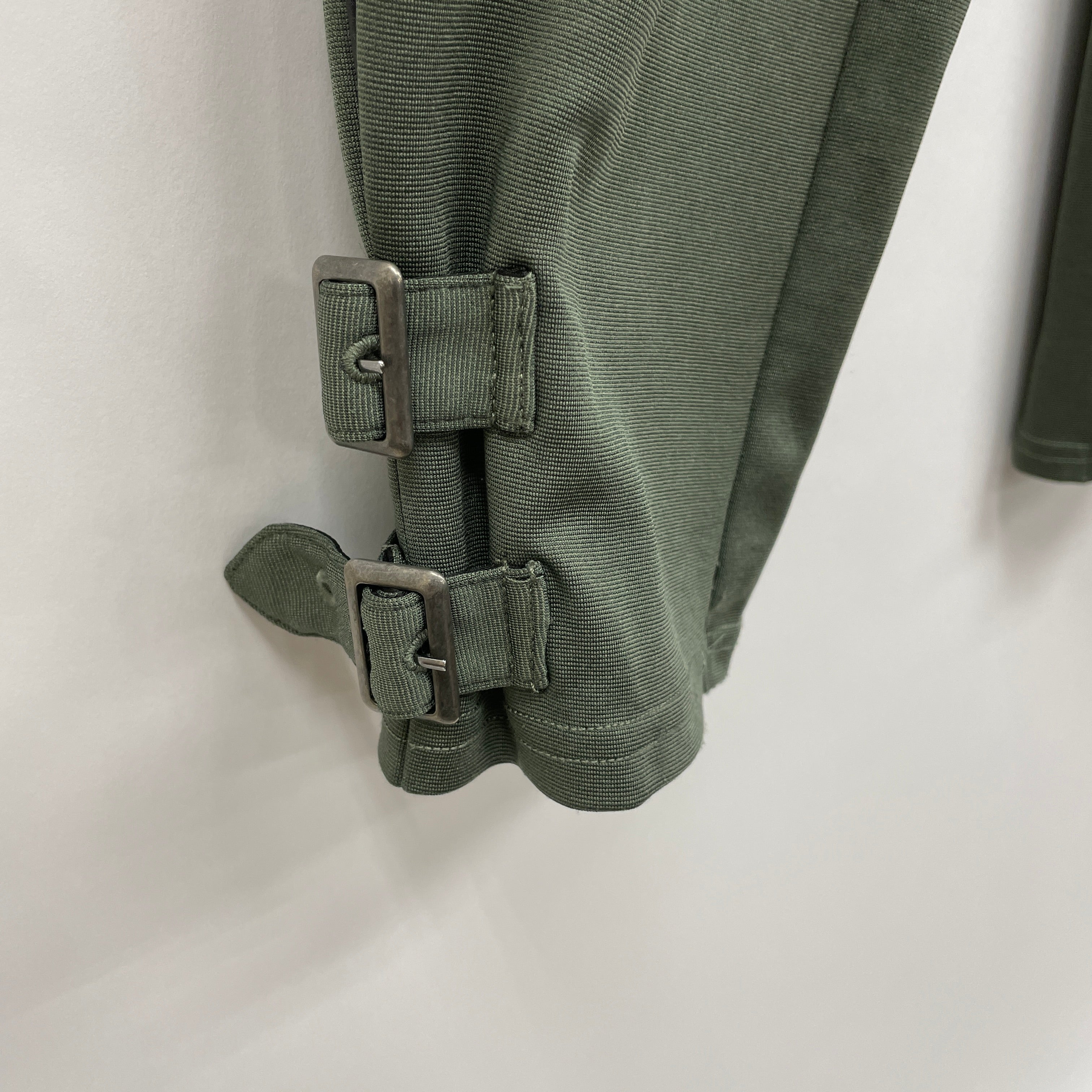 裾にあしらったベルトが辛口なアクセントになっています。