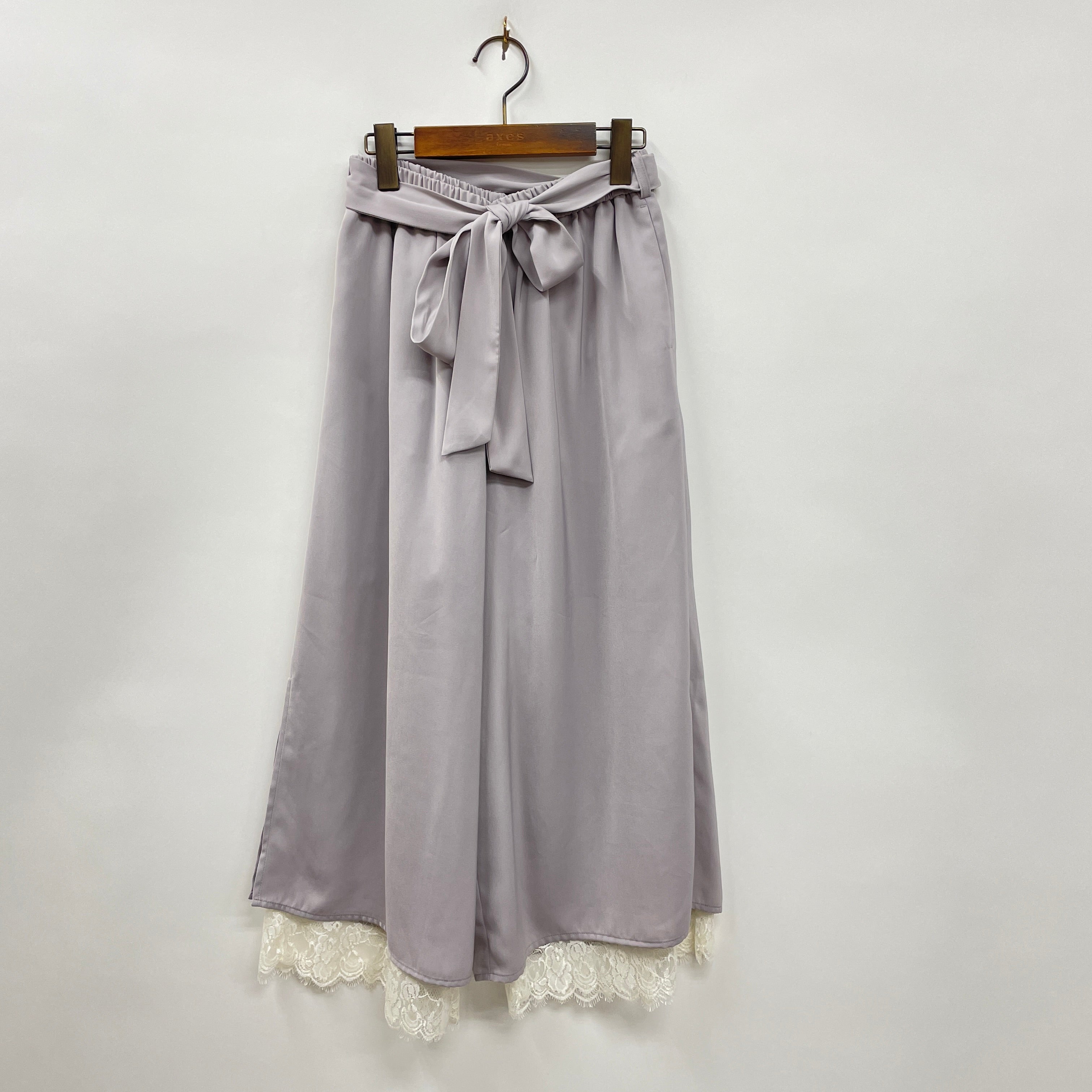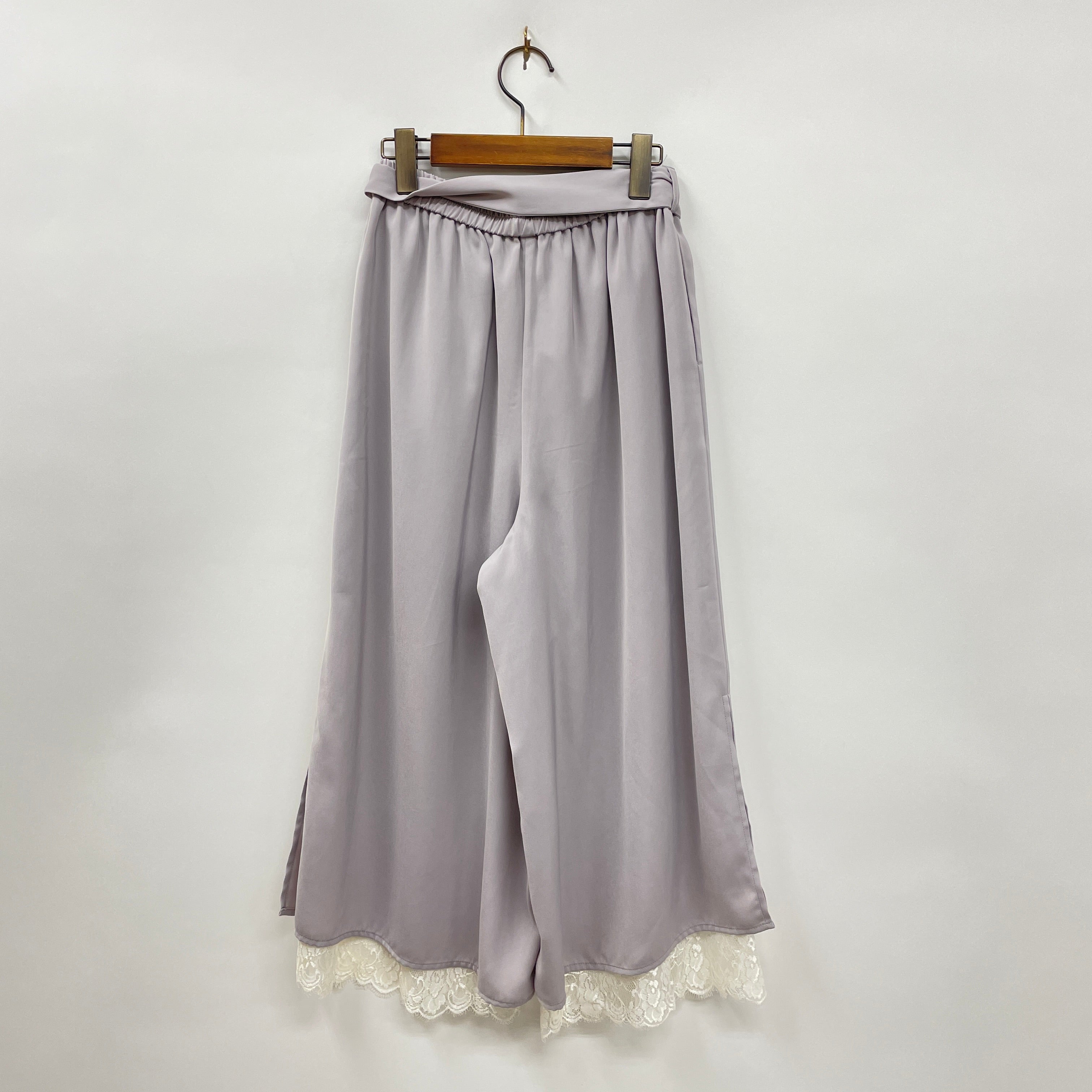 サイドスリットからレース生地がのぞくデザインのワイドパンツです。ウエストはゴム仕様になっているため履き心地◎トレンド感のあるチュニックなど丈感の長いアイテムと合わたスタイリングがオススメです。