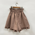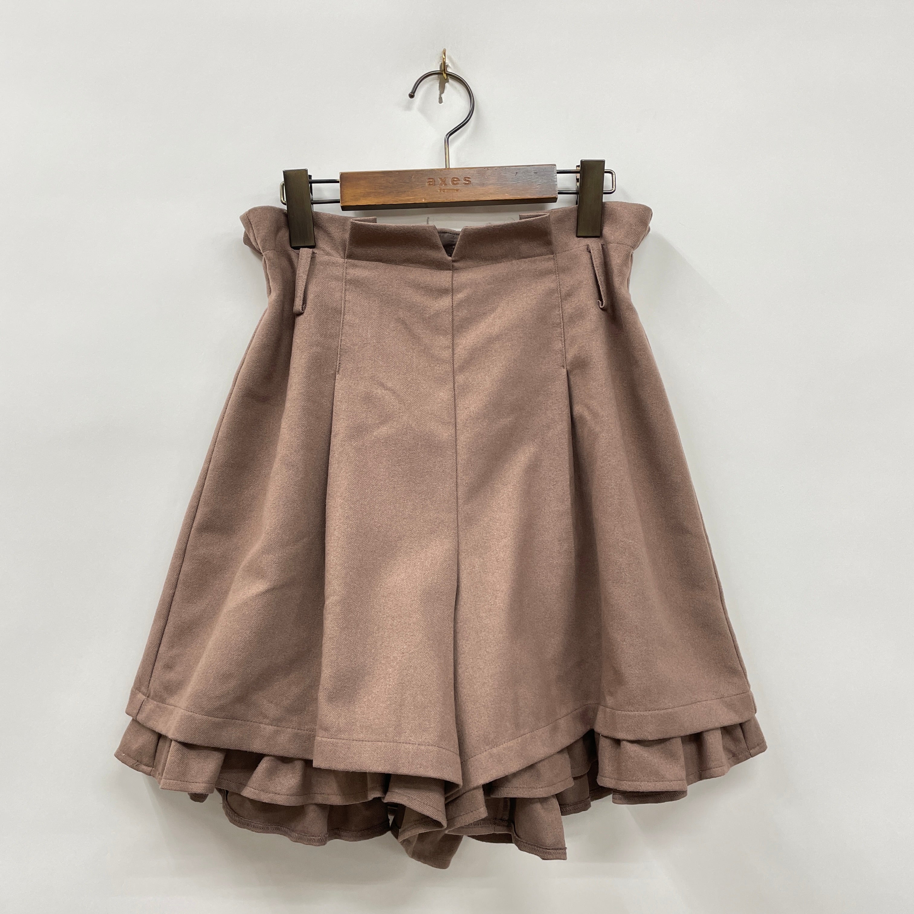 リボンデザインのベルト、裾のフリルがガーリーなフレアキュロットです。ハイウエストのデザインで、インスタイルもおすすめです。
